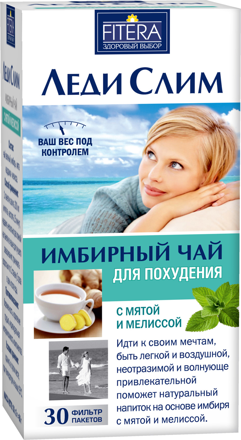 Fitera Имбирный чай Леди Слим с Мятой и Мелиссой, 30 пакетиков по 2 г.