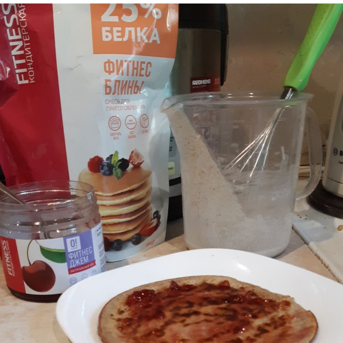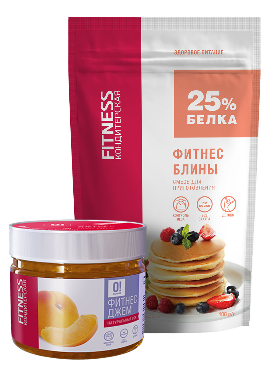 НАБОР: Фитнес блины. Смесь для приготовления + Джем 0! Калорий: Клубника