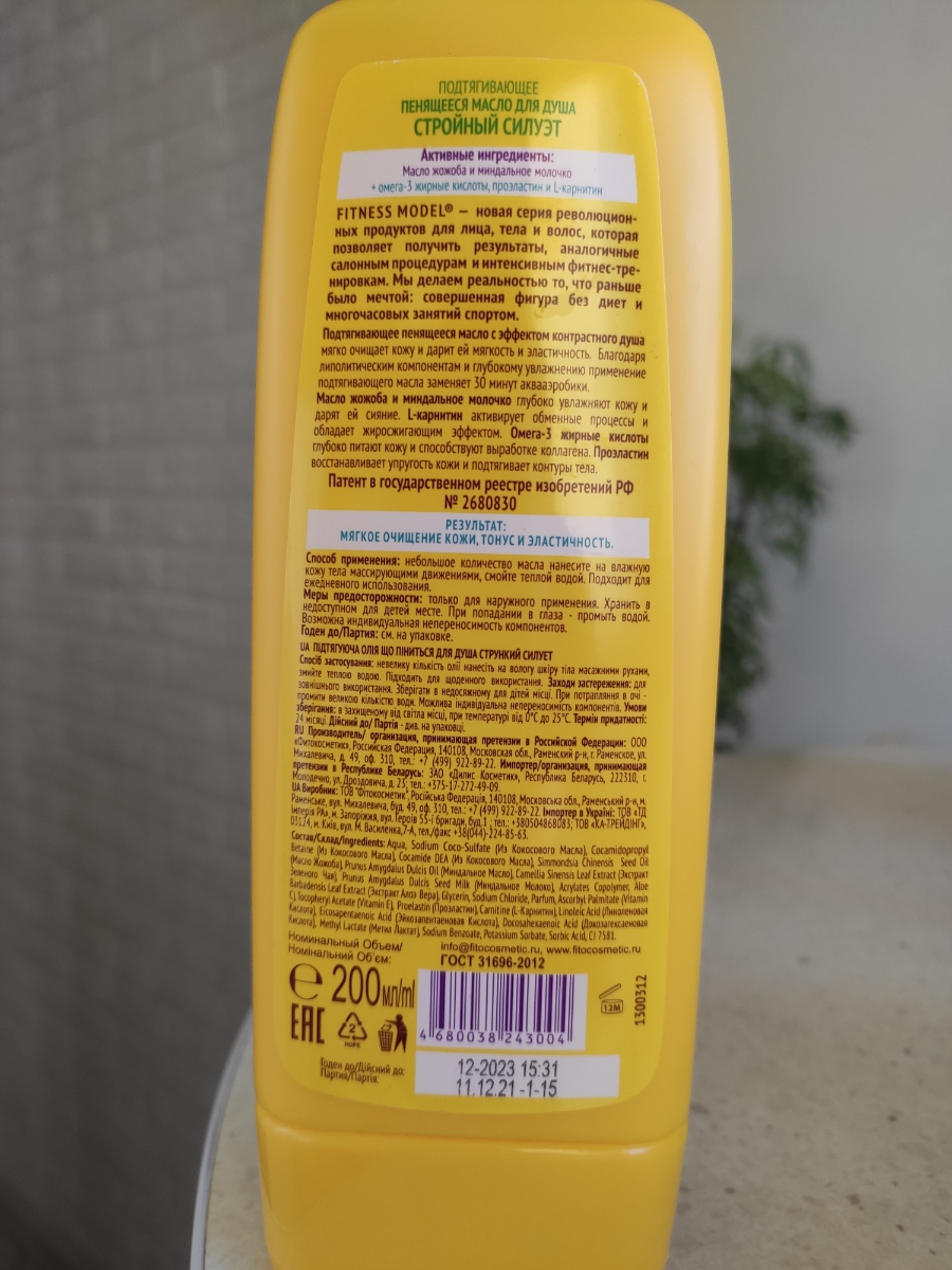 fito косметик / Пенящееся масло для тела серии FITNESS MODEL стройный силуэт, подтягивающее 200мл