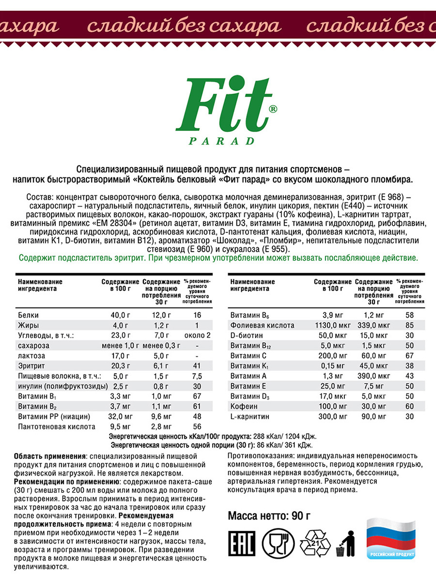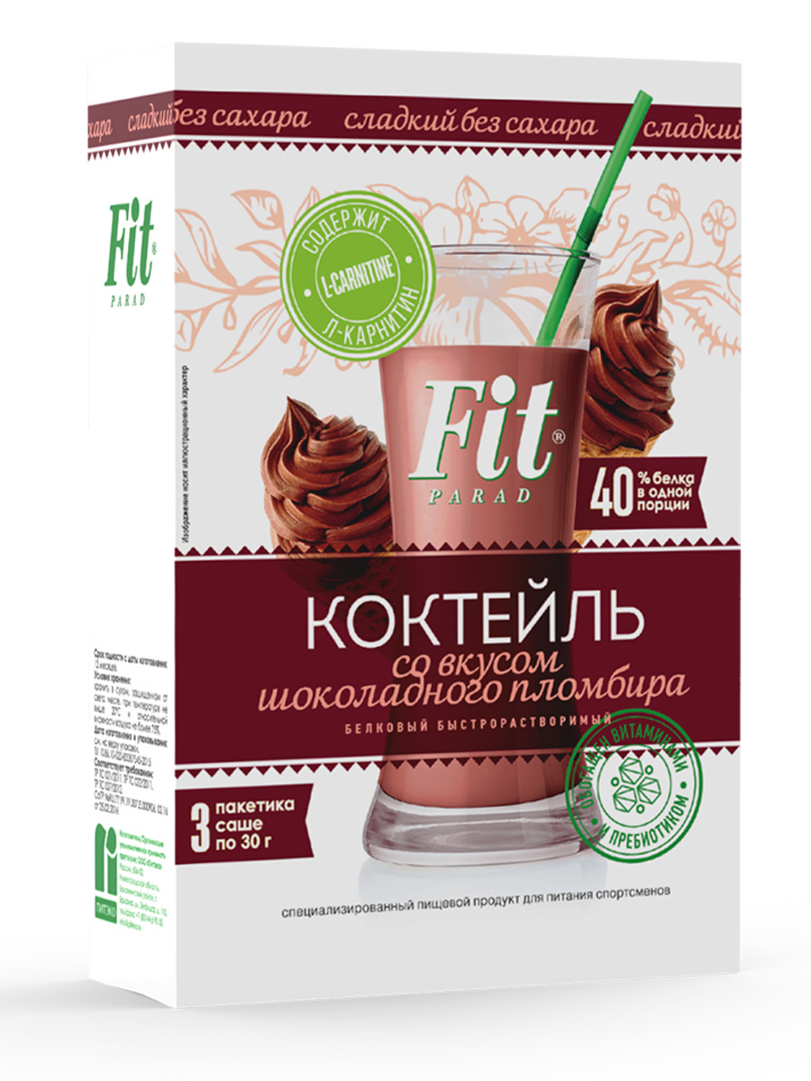 Коктейль белковый ФитПарад со вкусом Шоколадного Пломбира коробка 90 г.