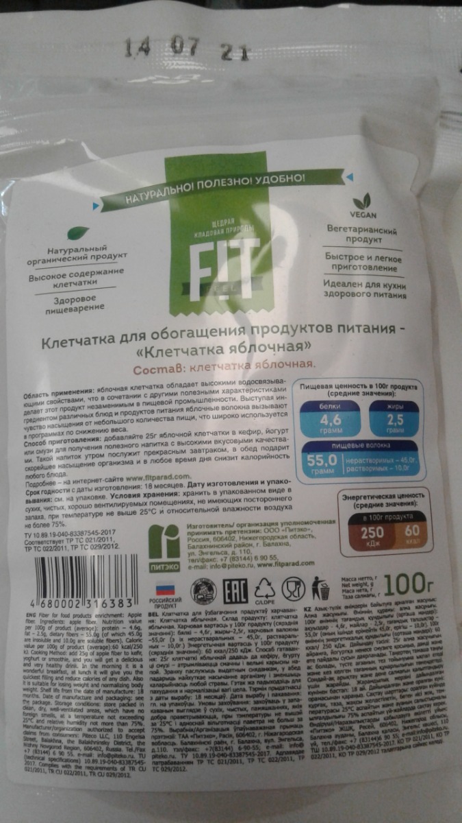 FitPARAD / Клетчатка Яблочная ФитПарад дой-пак 100 г.