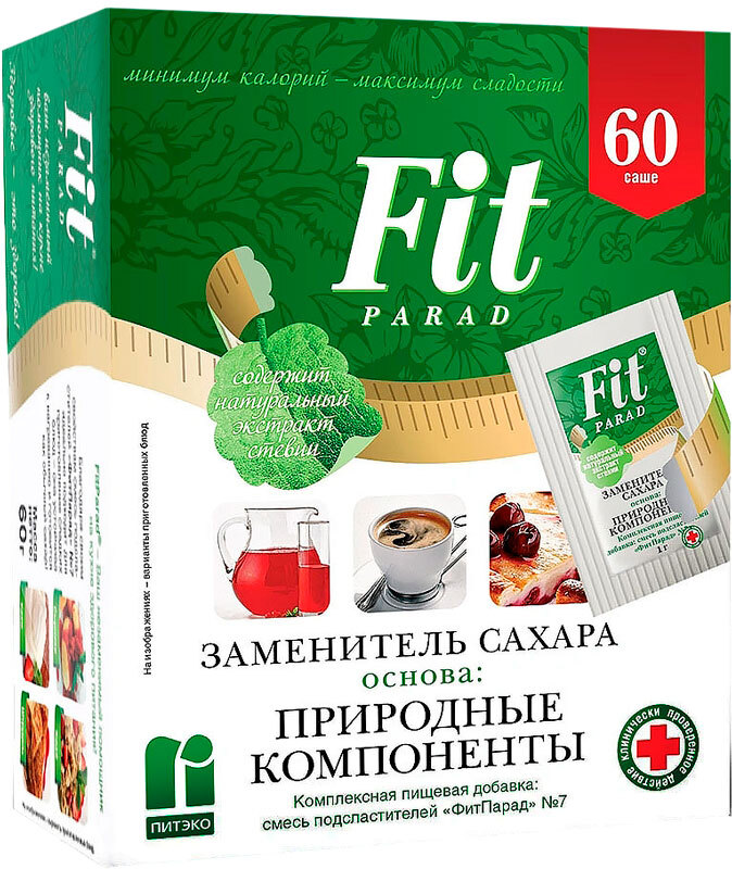 Сахарозаменитель / ФитПарад №7 саше 60 шт. / FitPARAD / Здоровое питание / Замена сахара