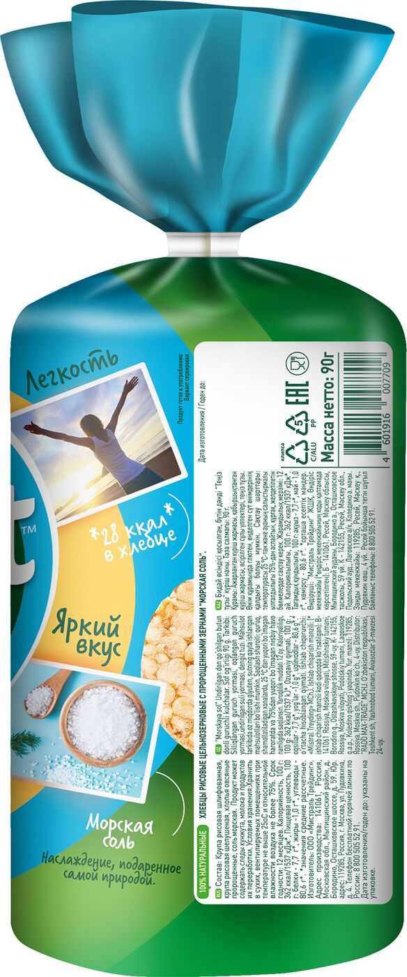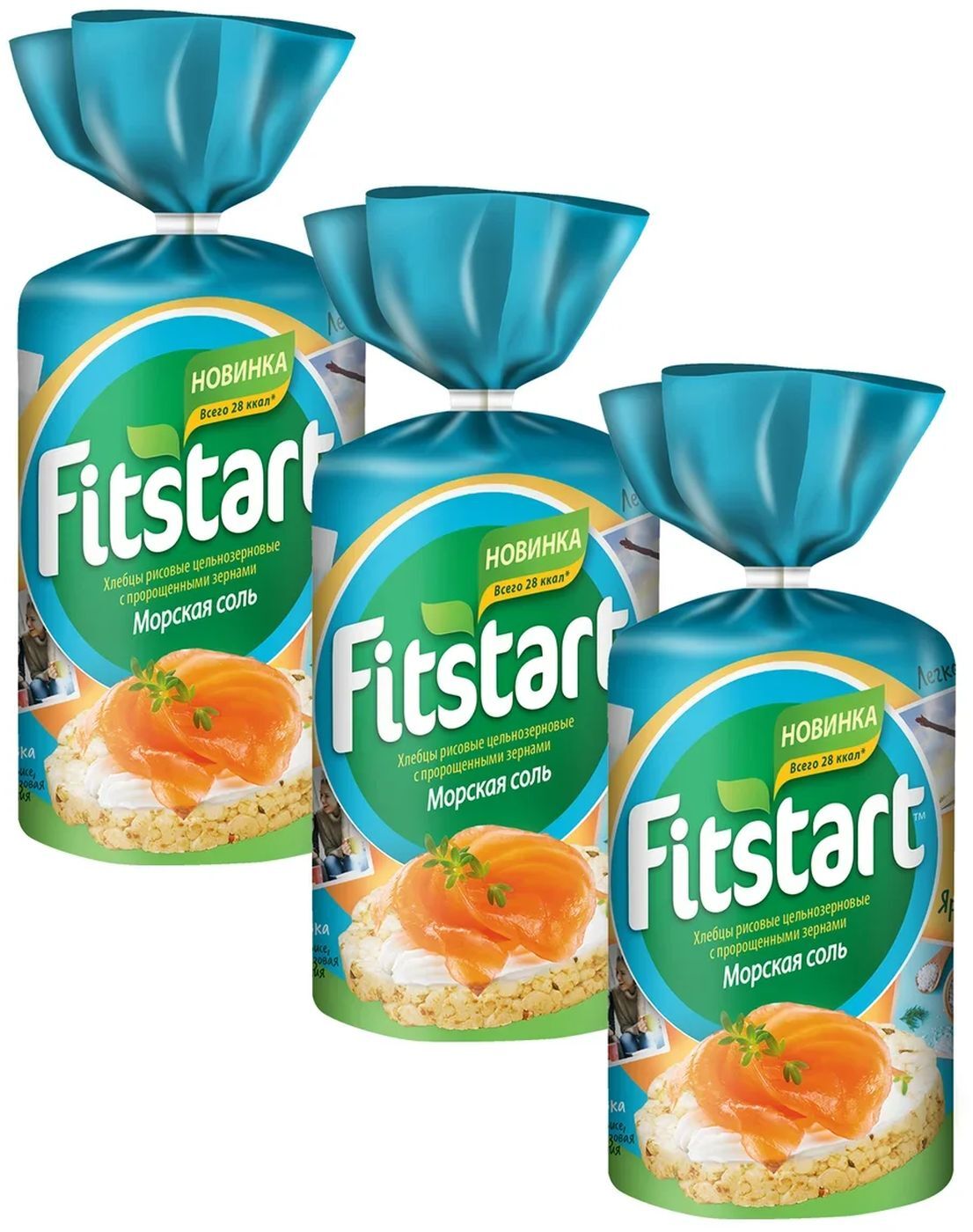 Хлебцы Fitstart Морская соль, рисовые, 3 шт по 90 г