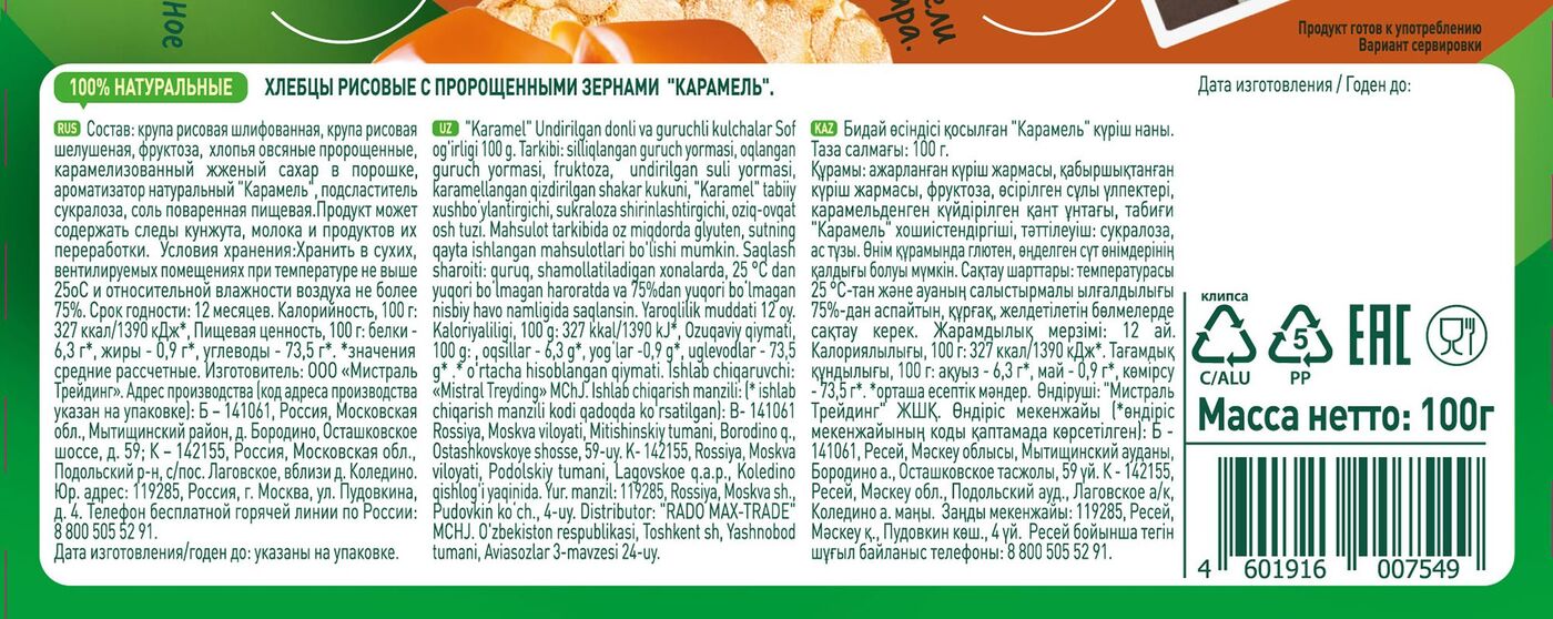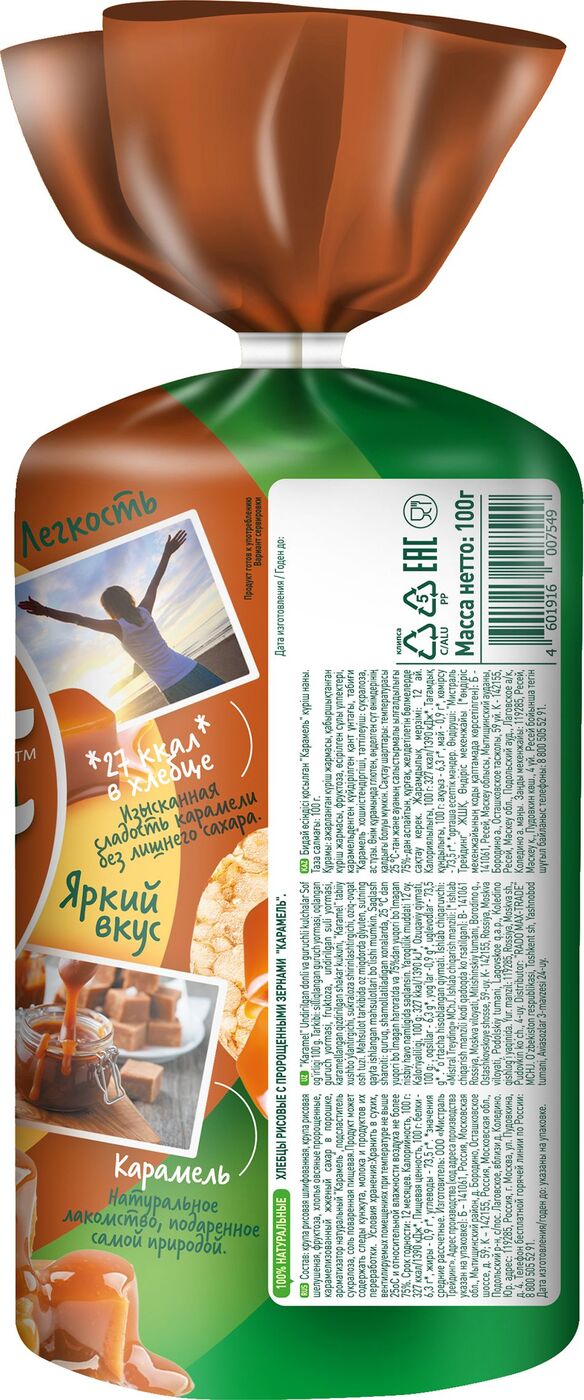 Хлебцы Fitstart Карамель, рисовые, 3 шт по 100 г