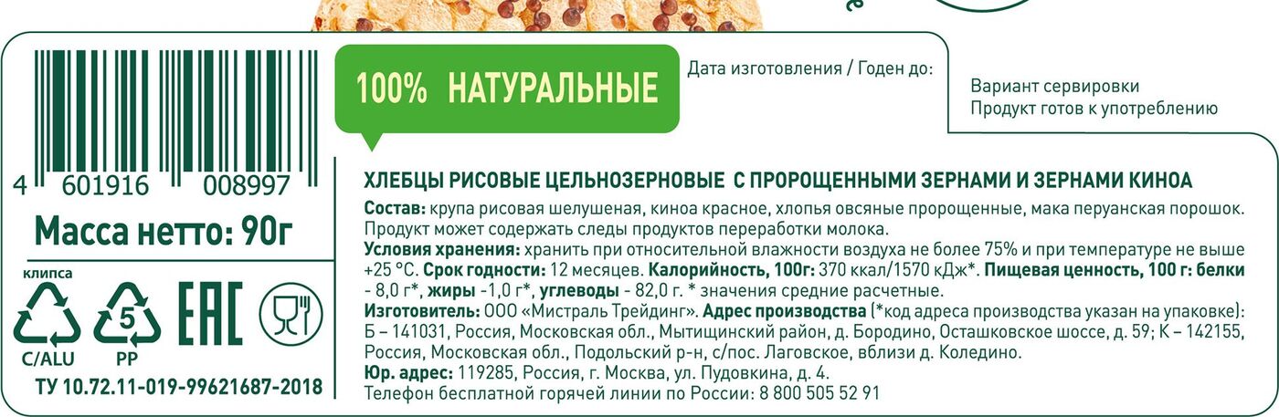 Хлебцы мультизлаковые брусника имбирь и мед Fitstart, 12шт х 100 г