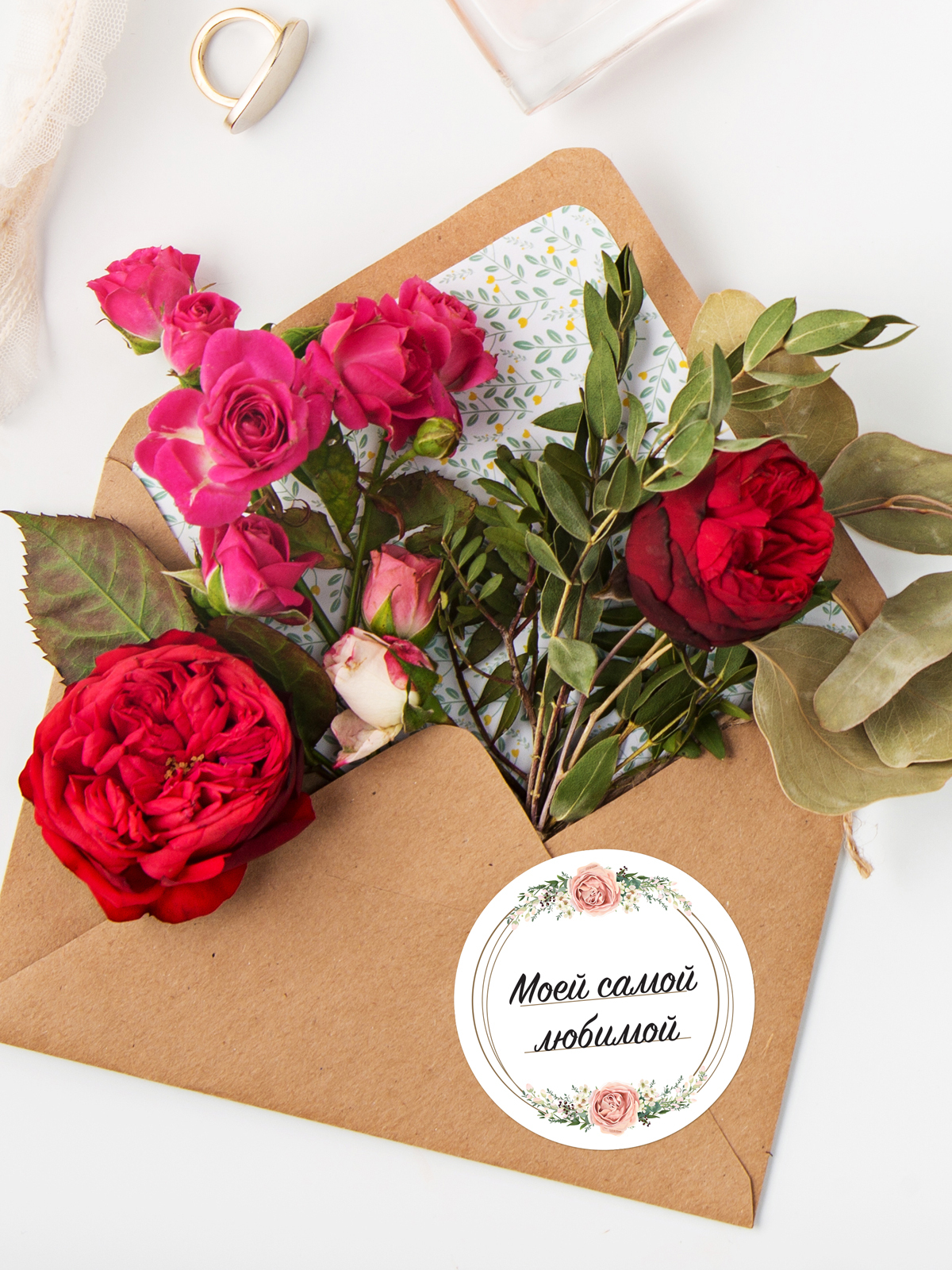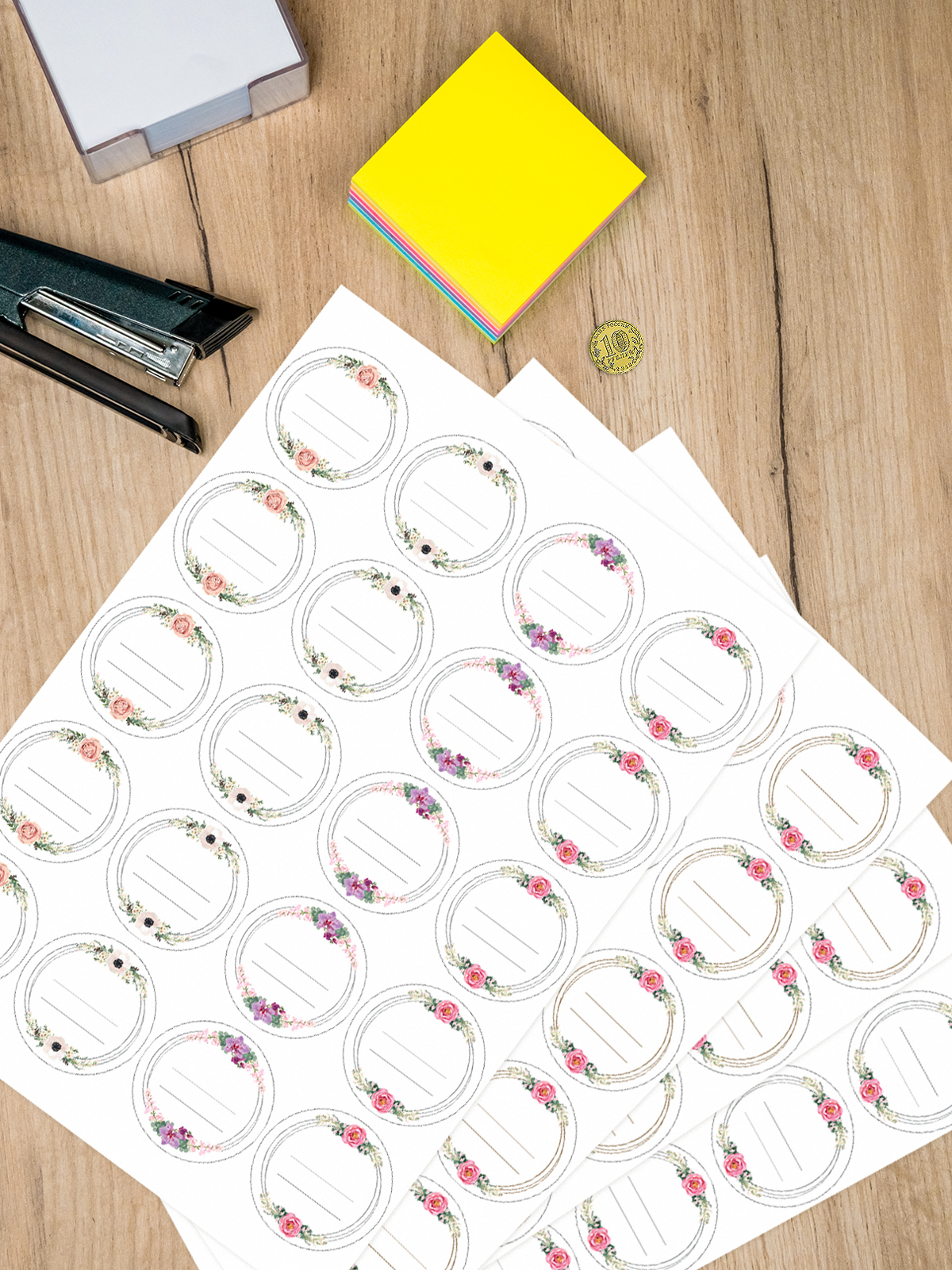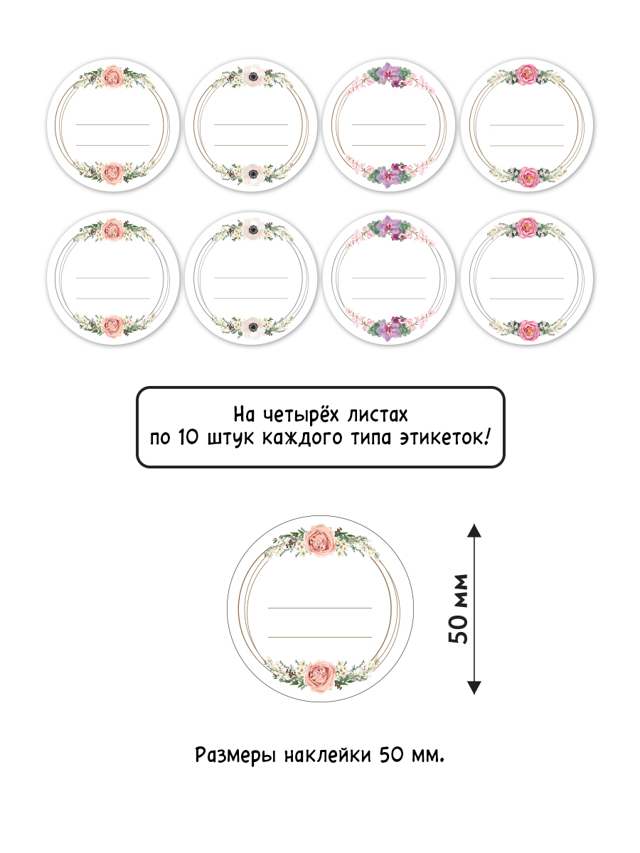 Самоклеящиеся круглые этикетки "Цветочные кольца", диаметр 50 мм, 80 шт. в комплекте, формат А4