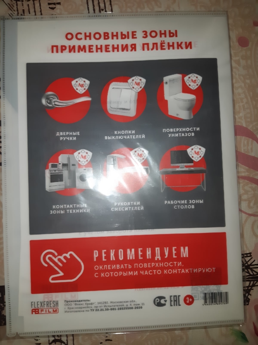 Антибактериальная самоклеющаяся пленка с ионами серебра ABFilm (антимикробная, дезинфицирующая)