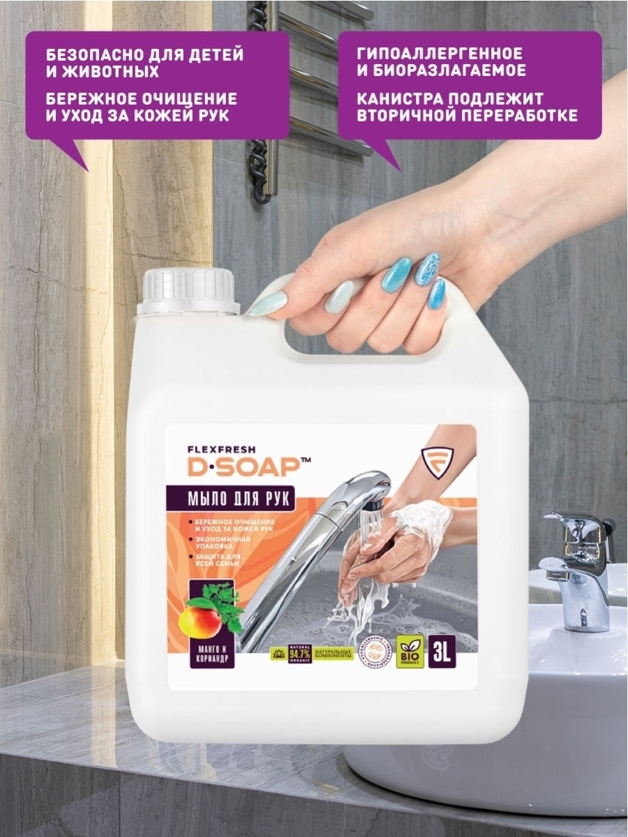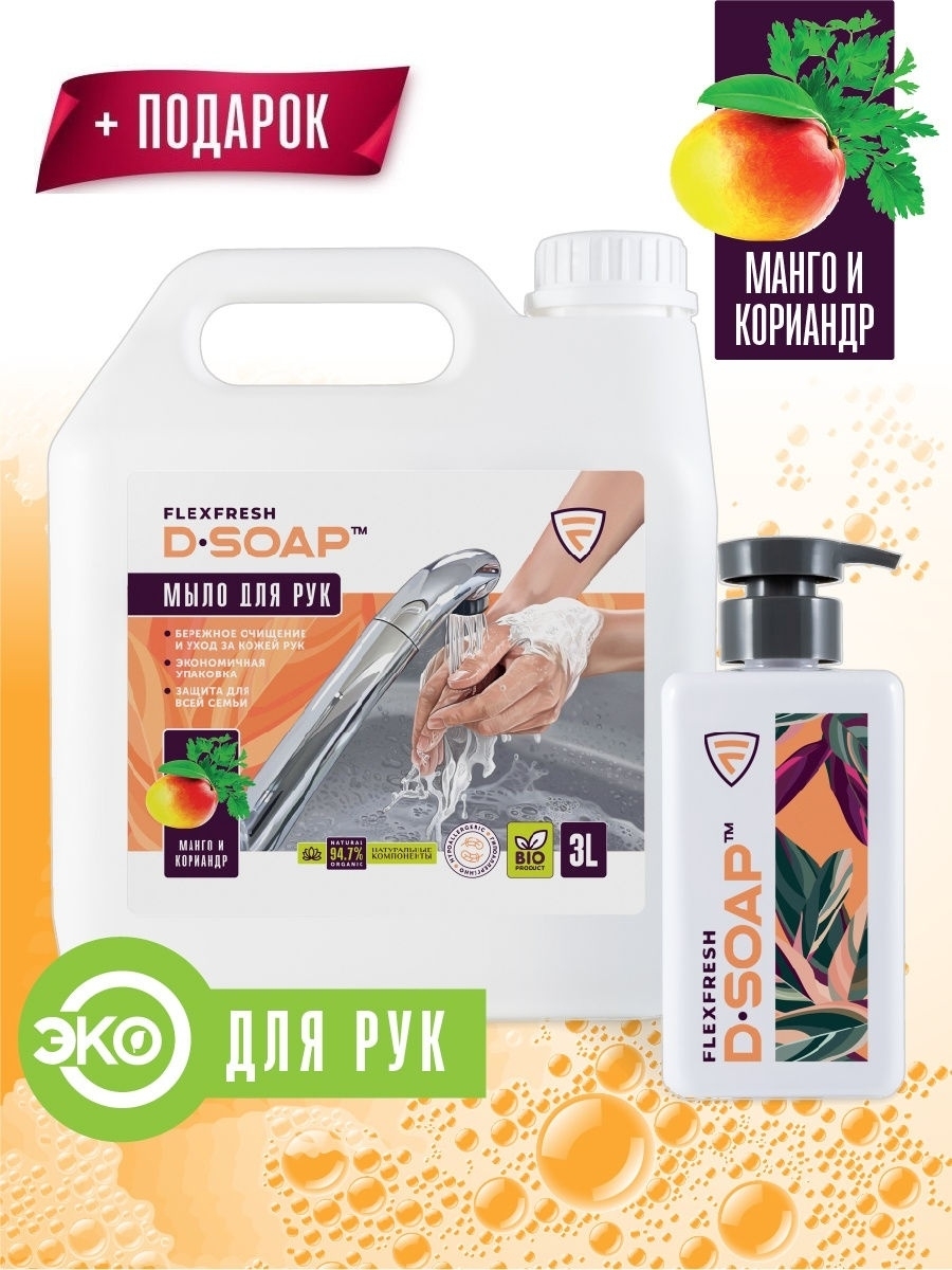 Антибактериальное жидкое мыло пенка для рук Flexfresh "D-FOAM" 3 литра, дой-пак