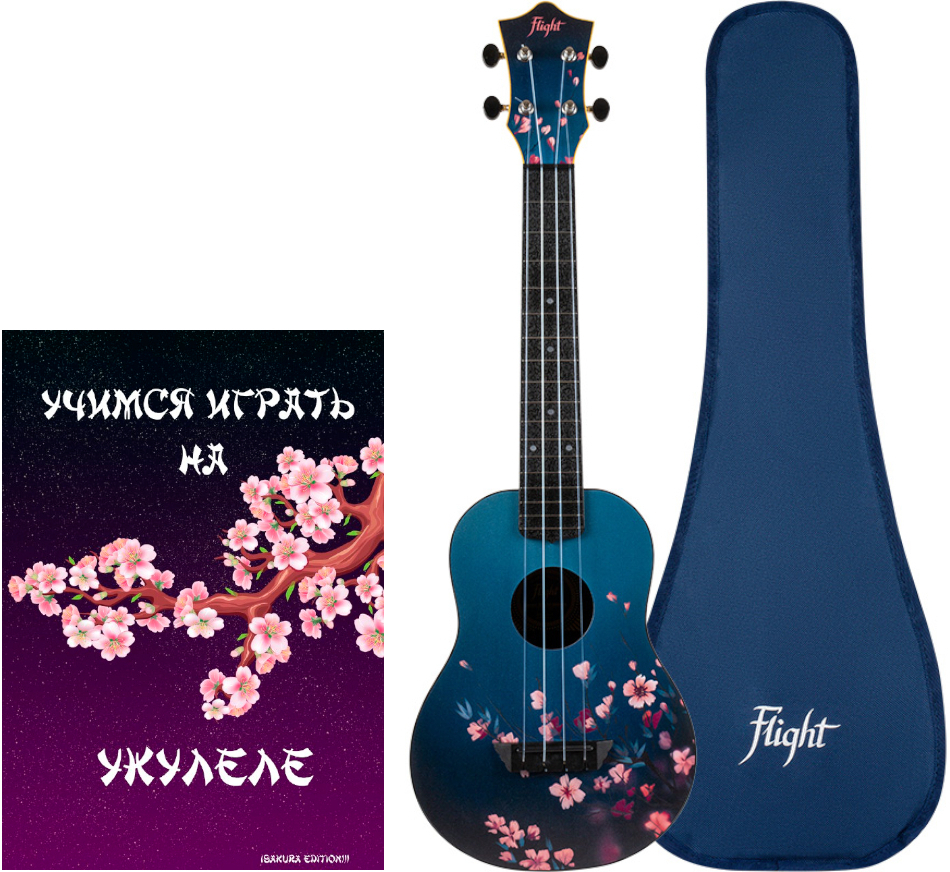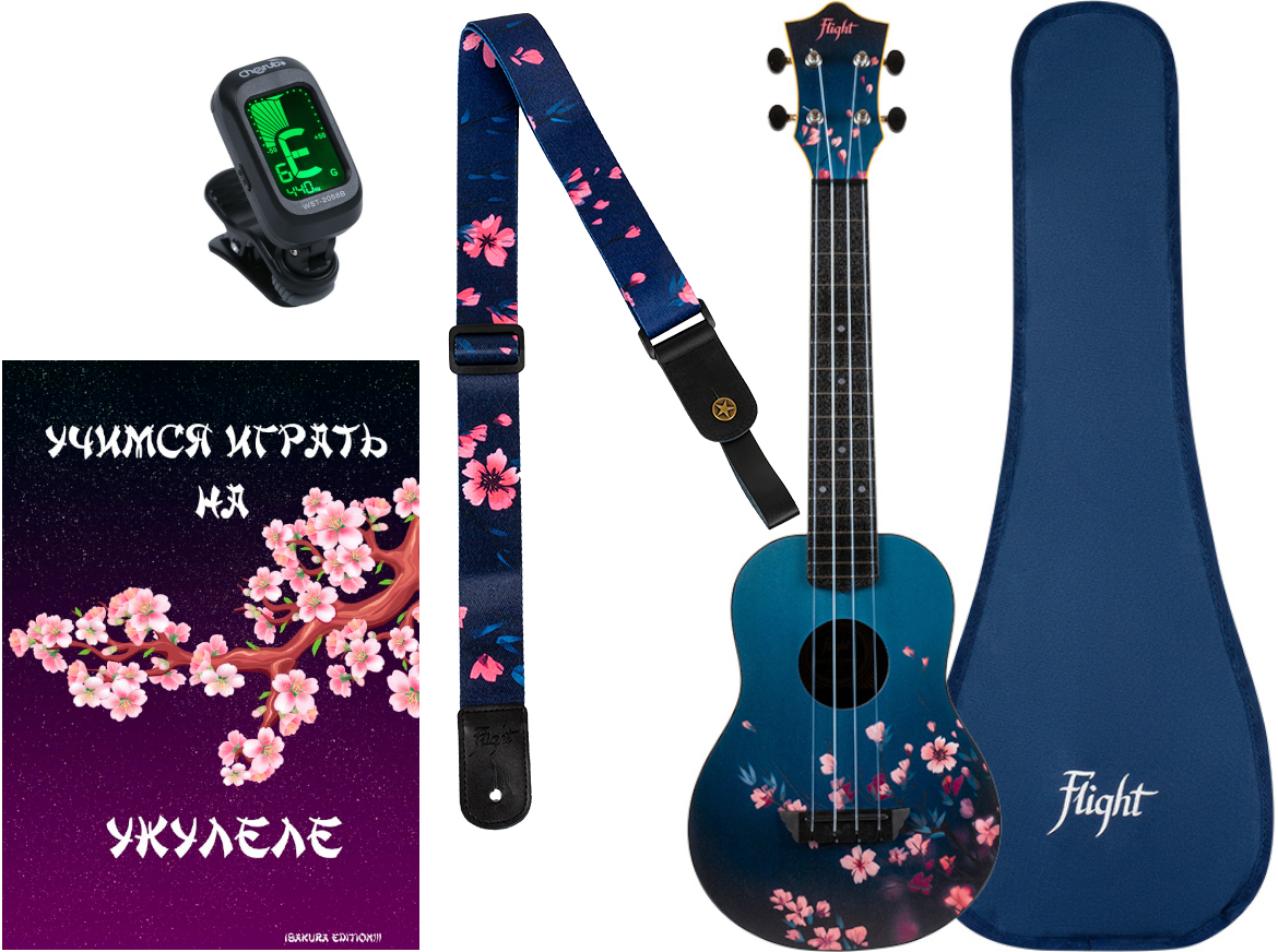 Укулеле концерт Большая сакура FLIGHT TUC-32 SAKURA с самоучителем, ремнём, тюнером и чехлом