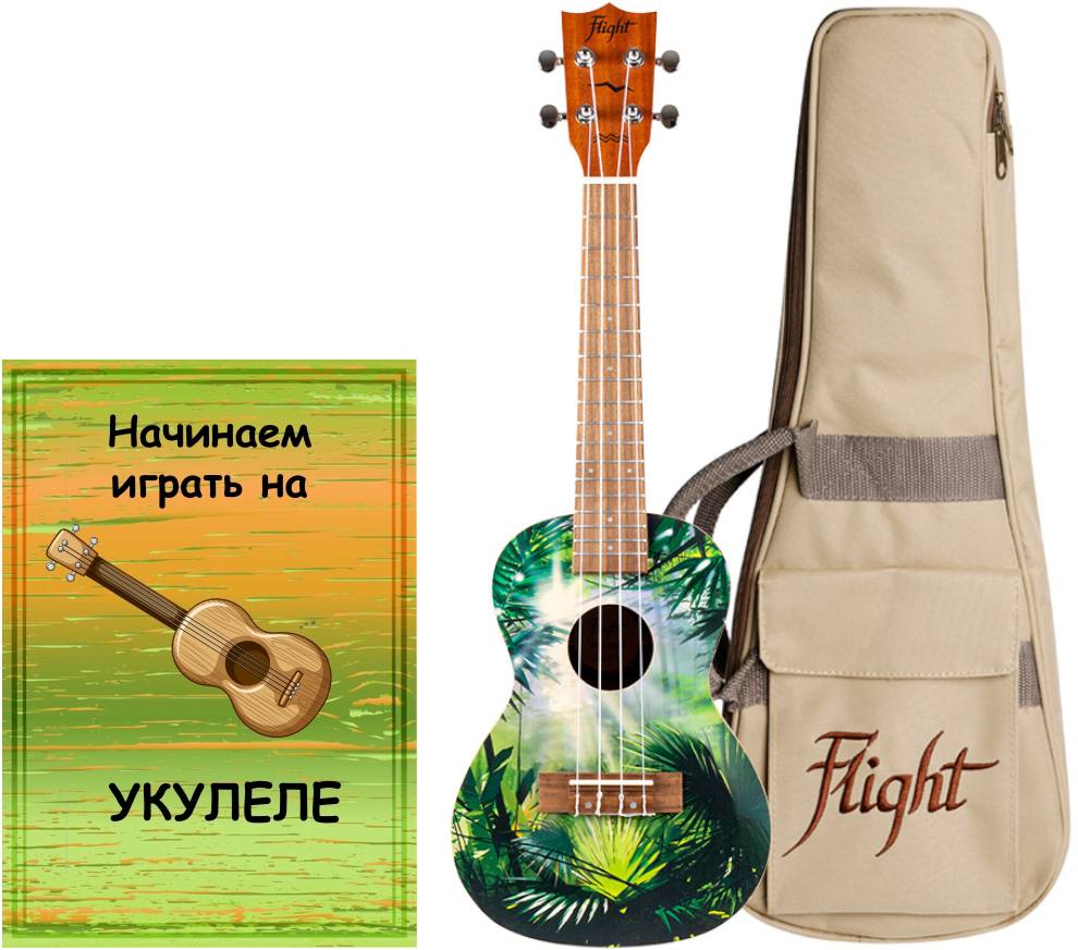 Укулеле концерт Джунгли Flight AUC-33 Jungle с самоучителем и чехлом
