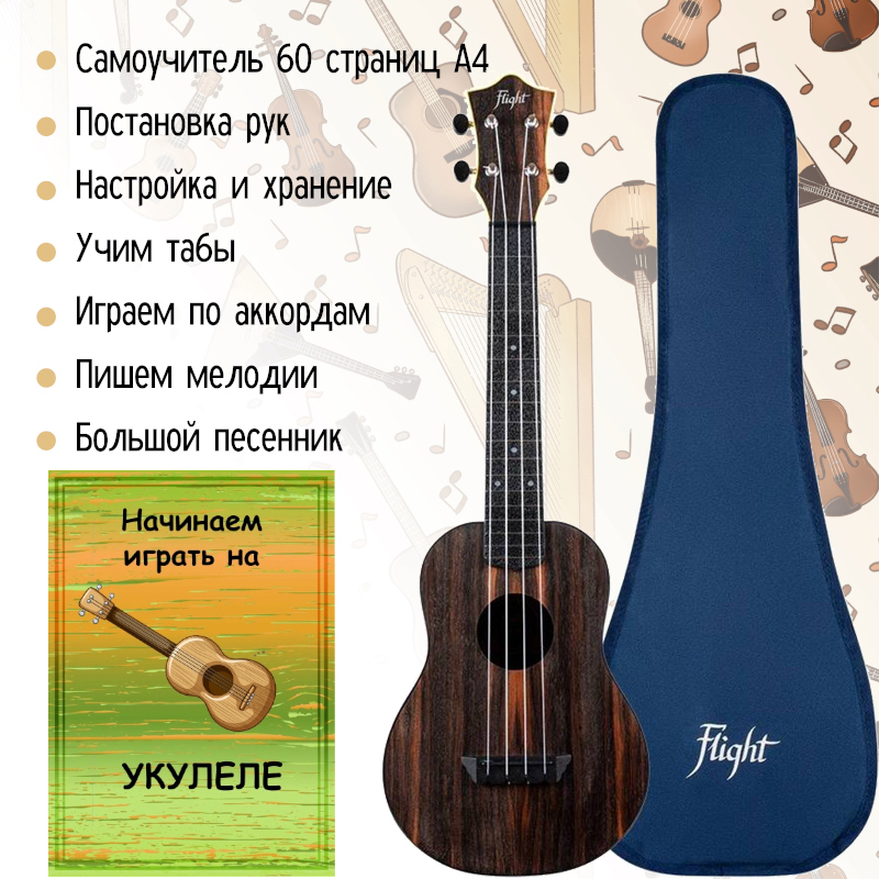 Укулеле Хиппи Flight TUS 25 BUS с самоучителем и чехлом