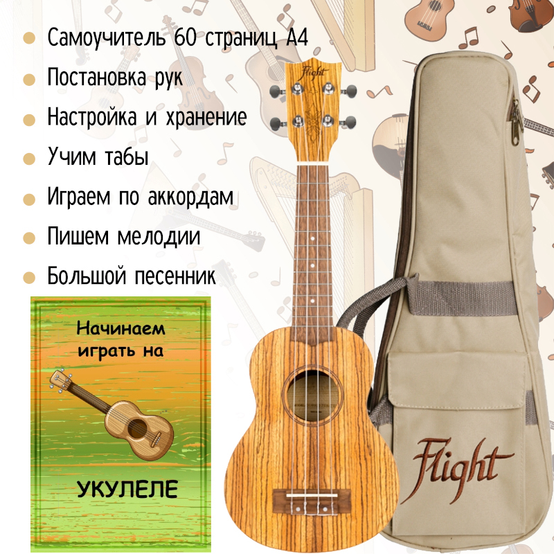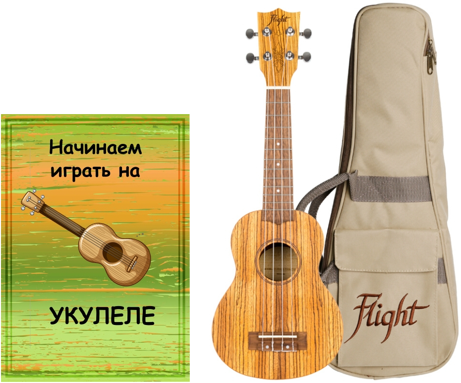 Укулеле Тигр Flight DUS 322 ZEB с самоучителем и чехлом