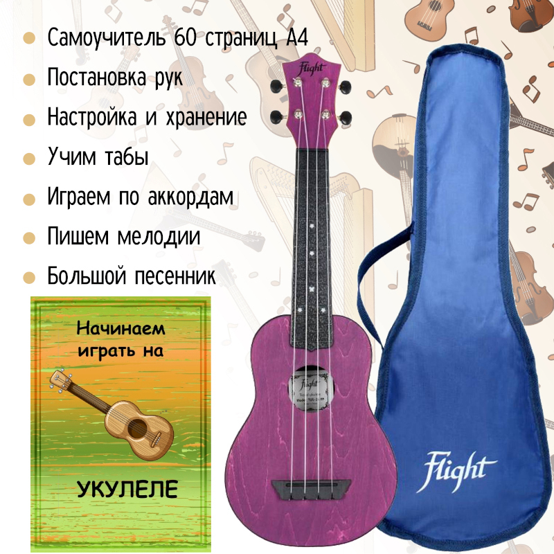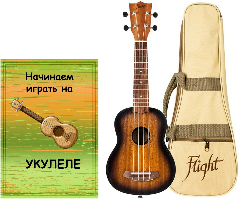 Укулеле Янтарь Flight NUS380 Amber с самоучителем и чехлом