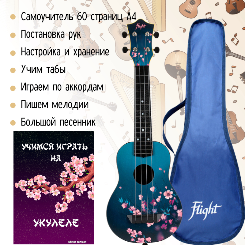 Укулеле Ночная сакура Flight TUS 32 Sakura с самоучителем и чехлом