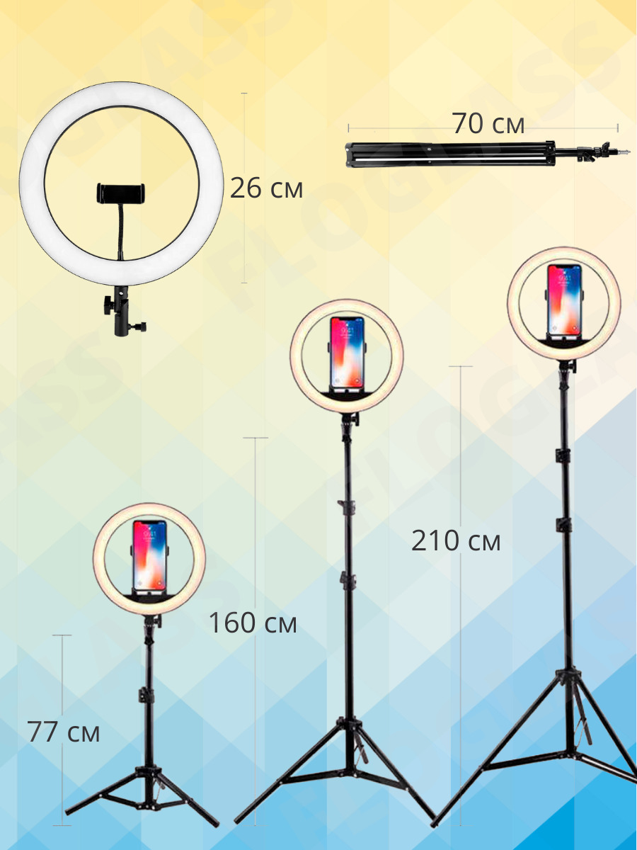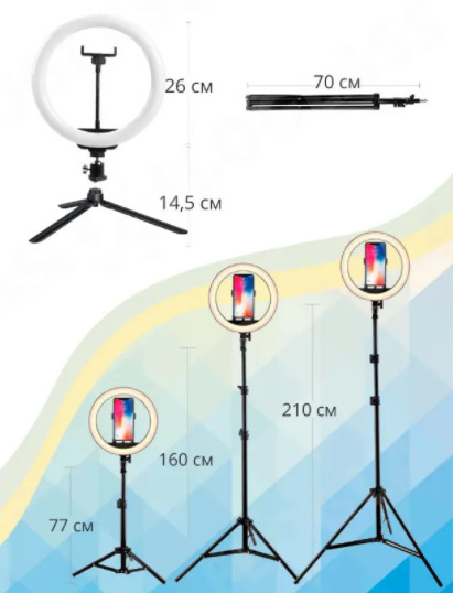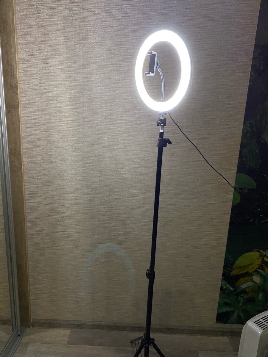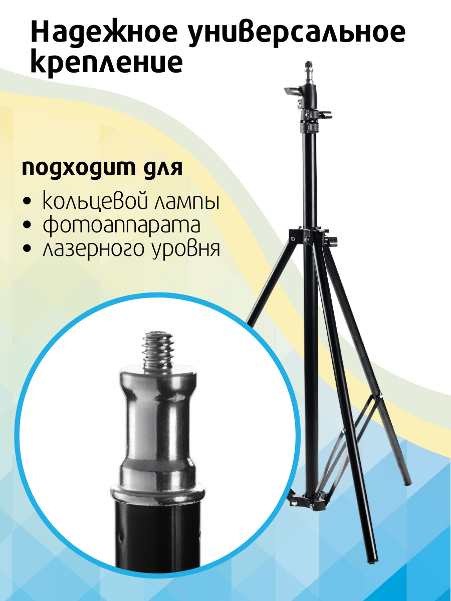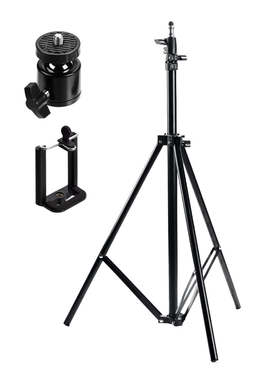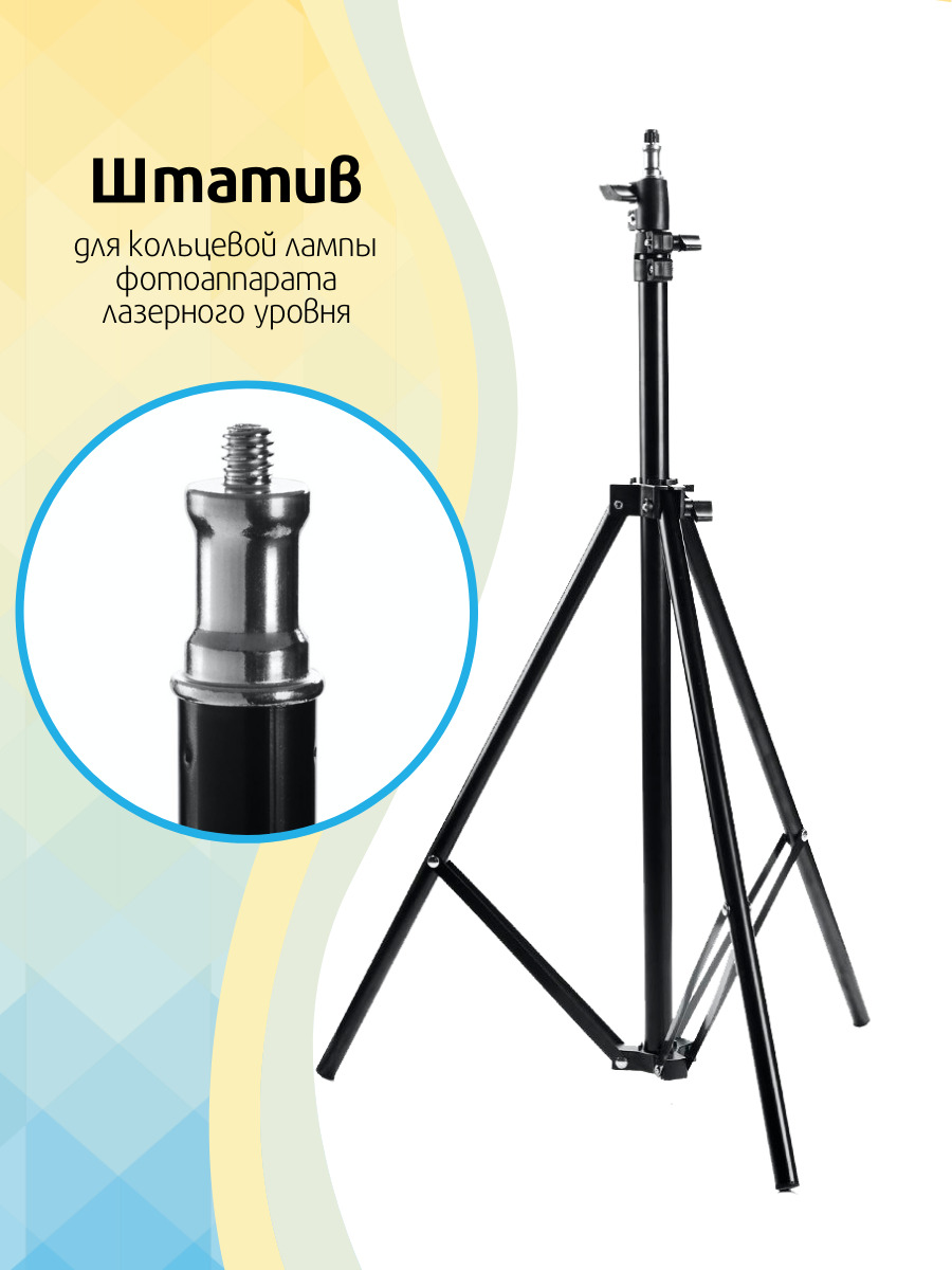 Штатив трипод для кольцевой лампы, смартфона, фотоаппарата 2.1 м + шарнир и держатель для телефона