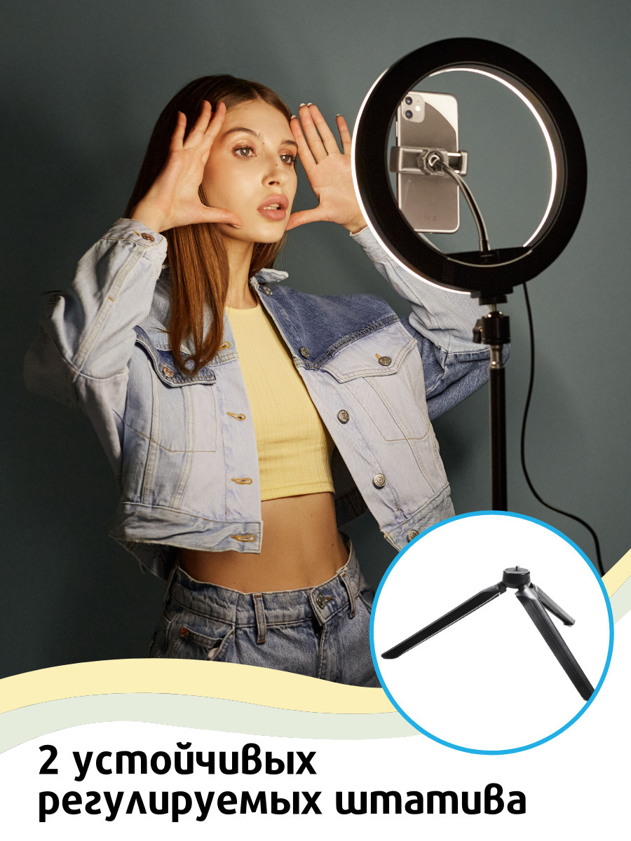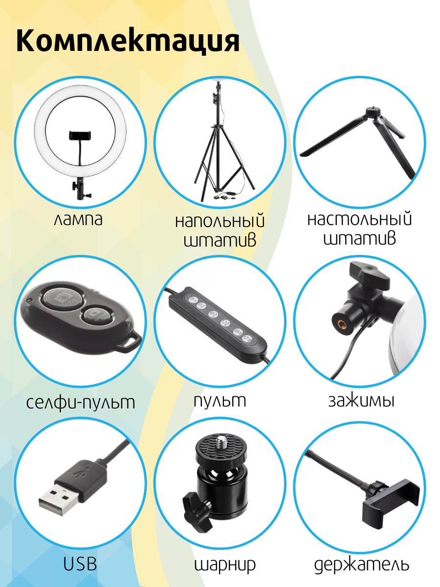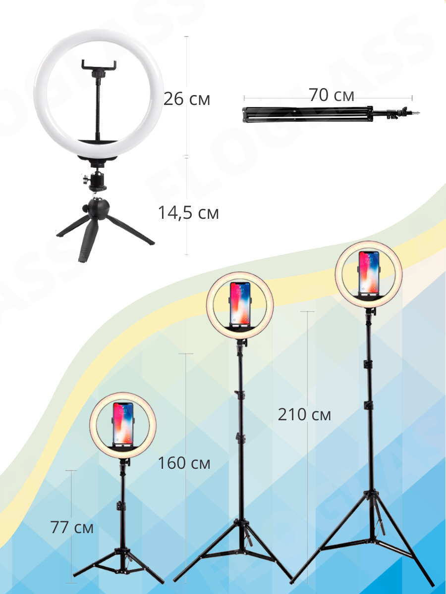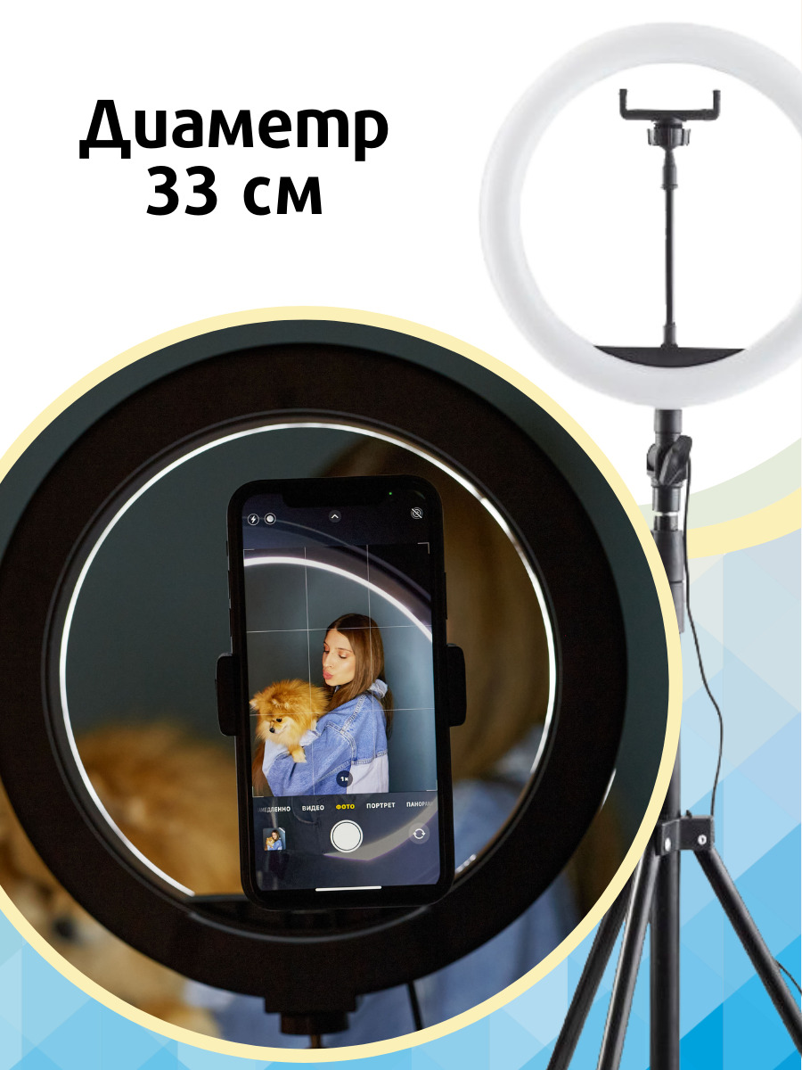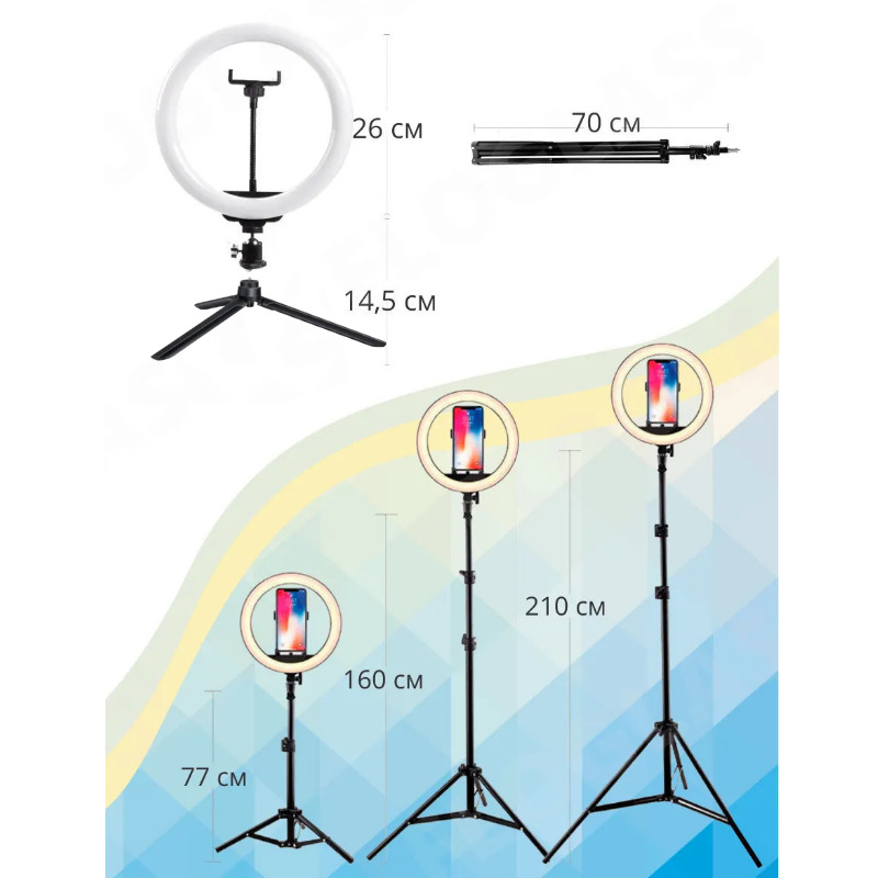 Штатив трипод для кольцевой лампы, смартфона, фотоаппарата 2.1 м + шарнир и держатель для телефона