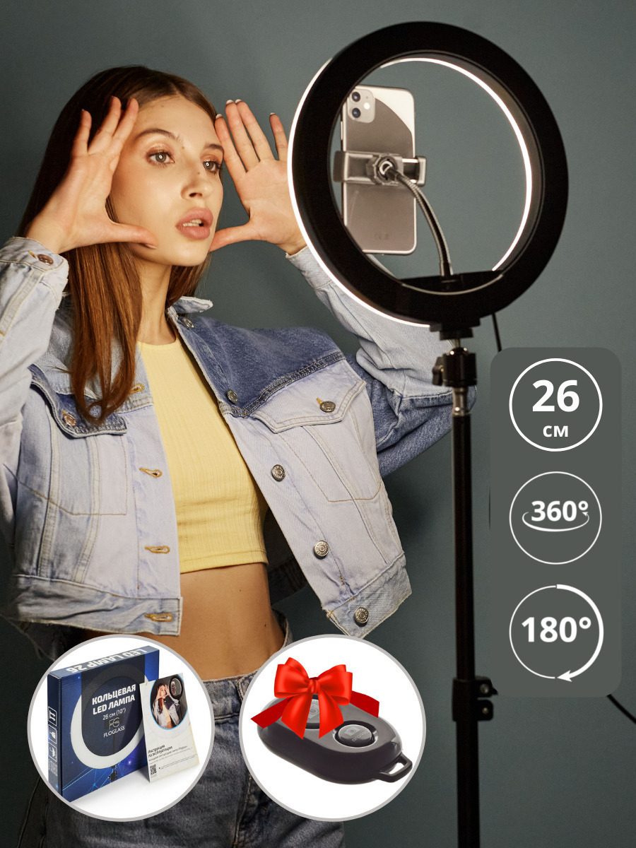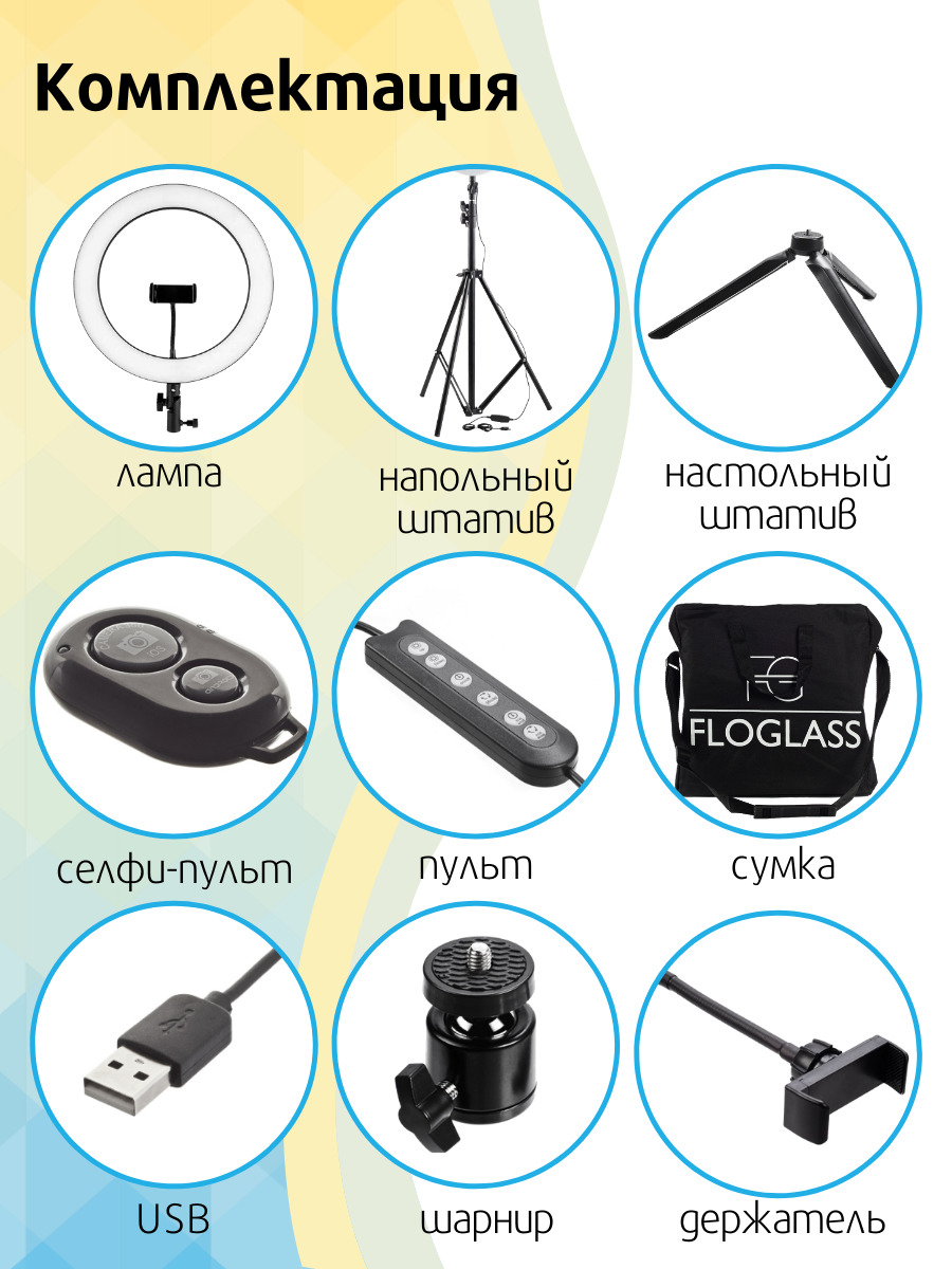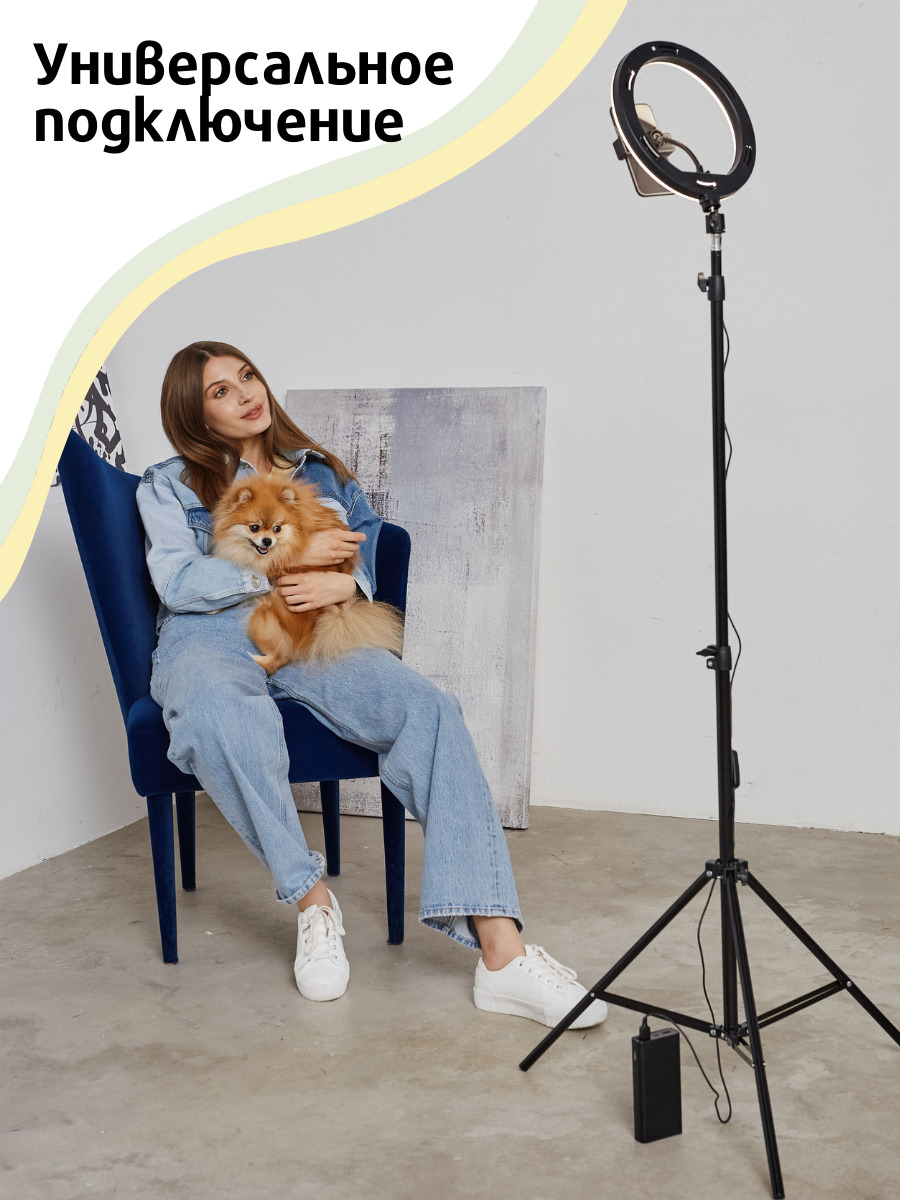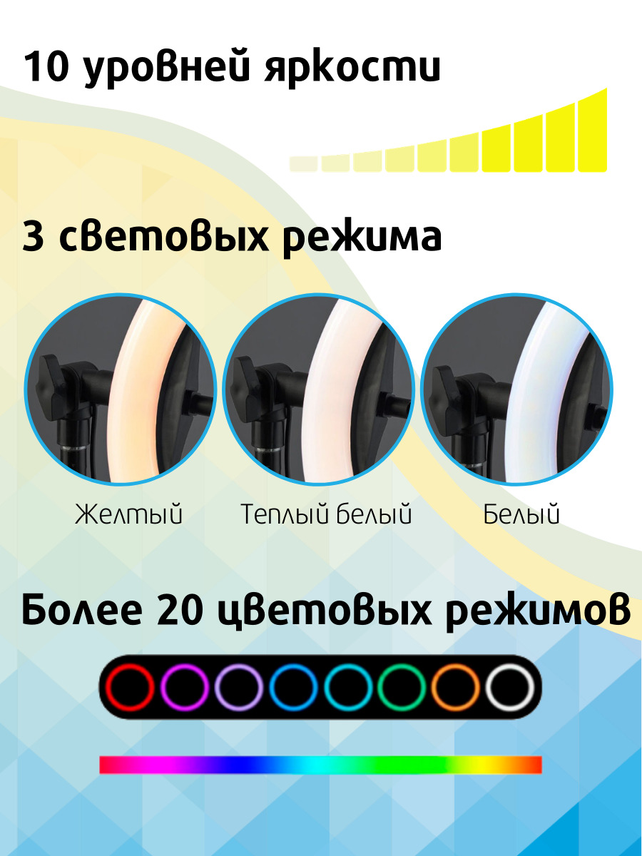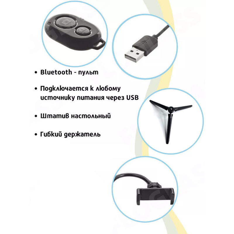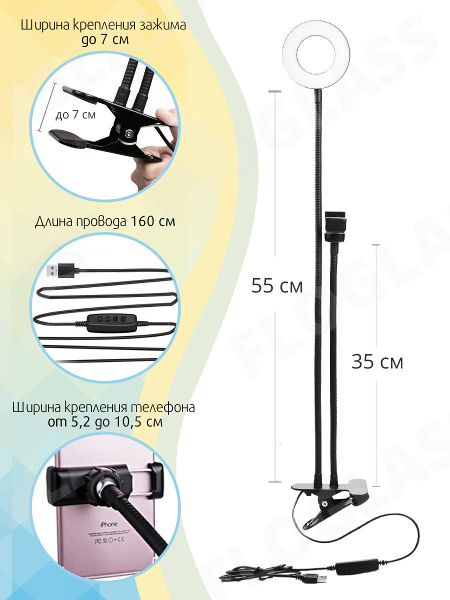 Штатив трипод для кольцевой лампы, смартфона, фотоаппарата 2.1 м + шарнир и держатель для телефона