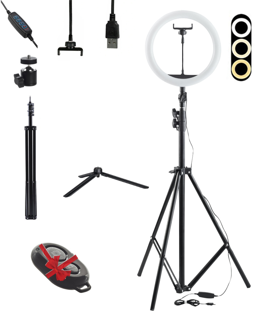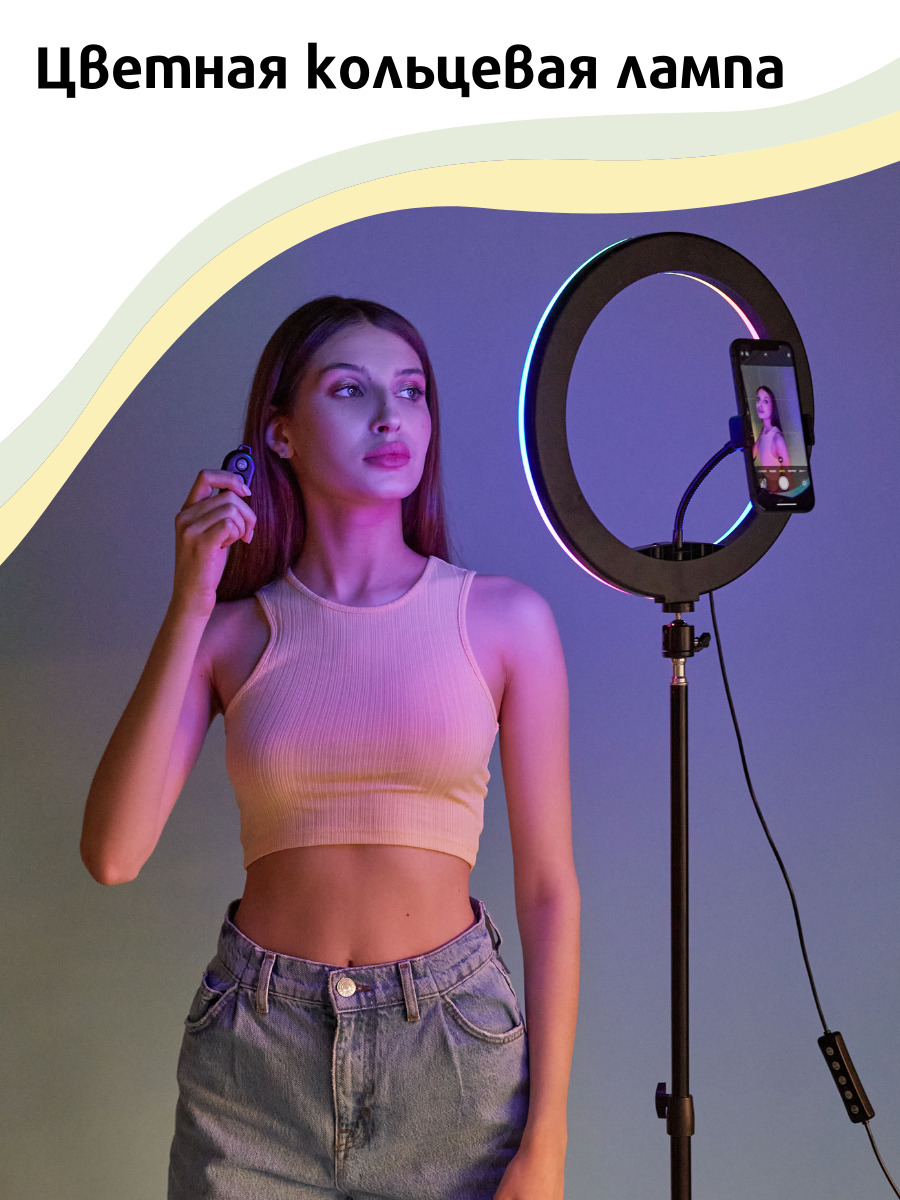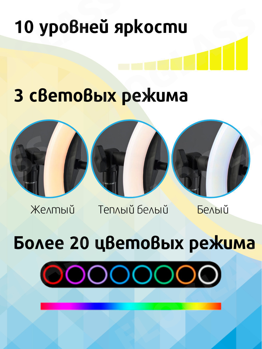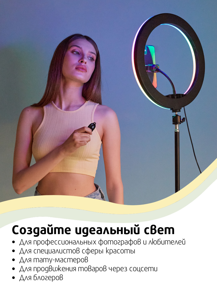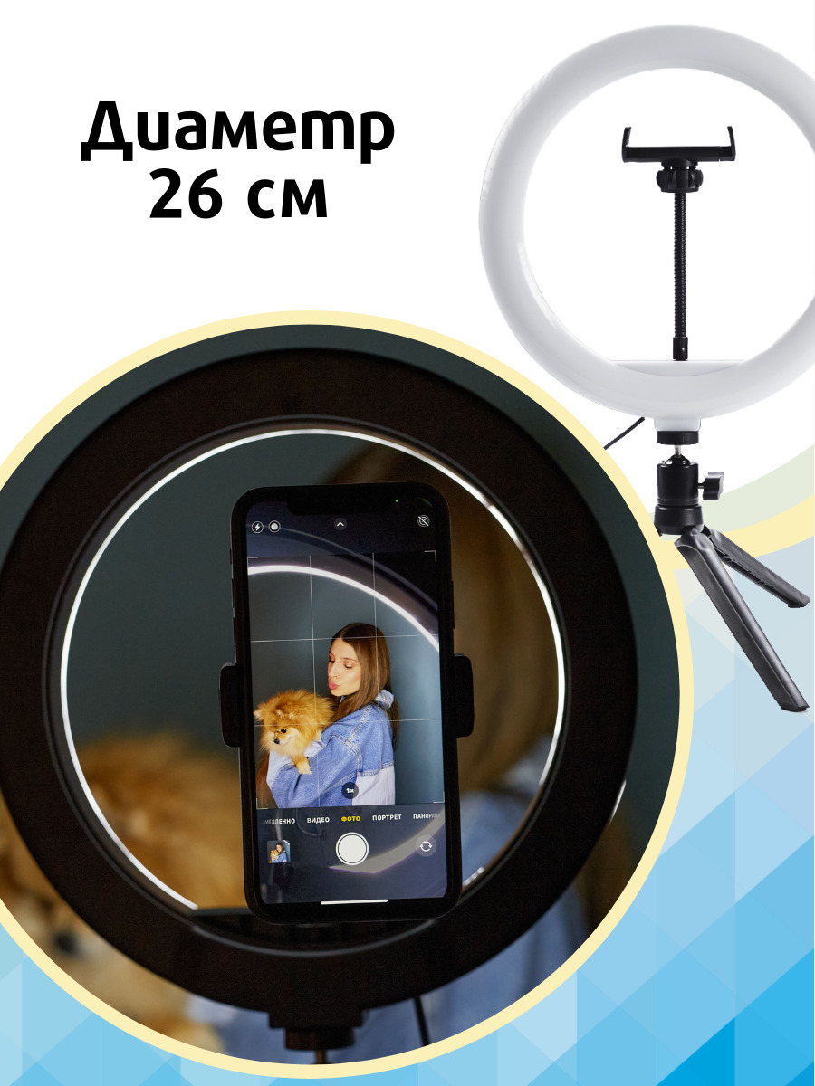 Штатив трипод для кольцевой лампы, смартфона, фотоаппарата 2.1 м + шарнир и держатель для телефона