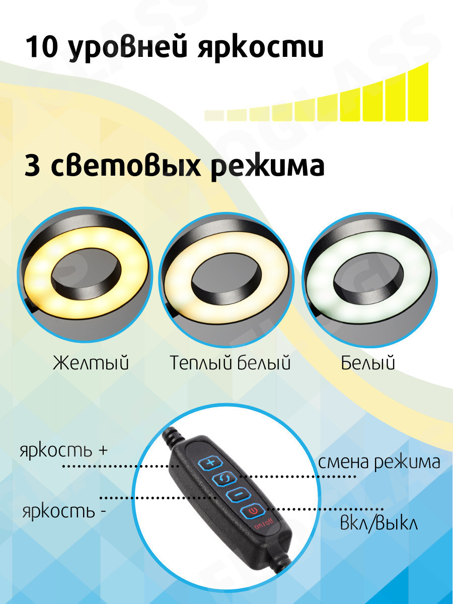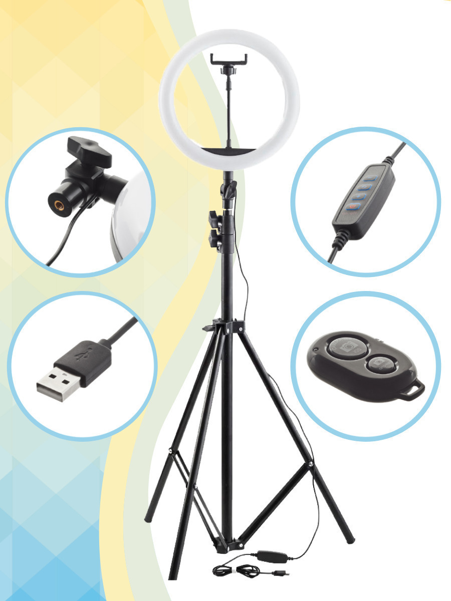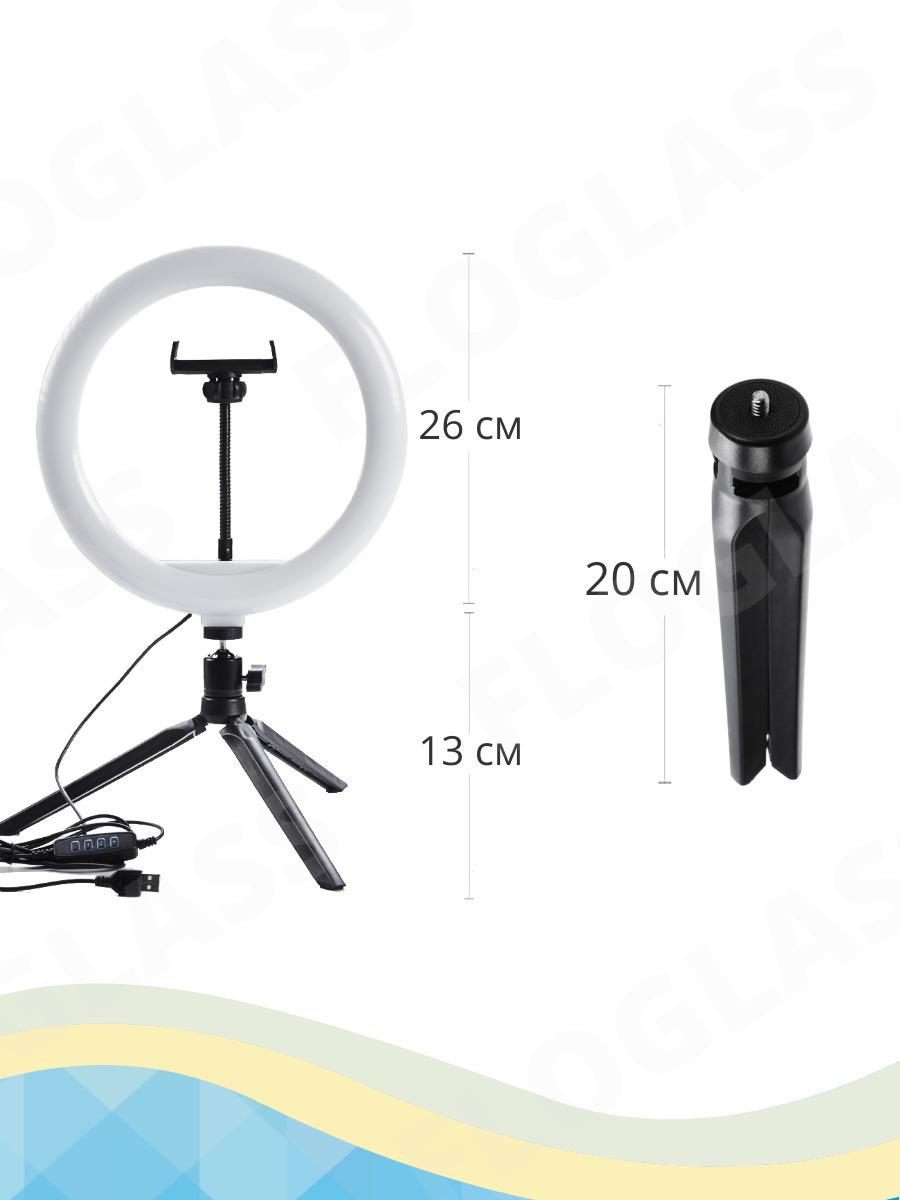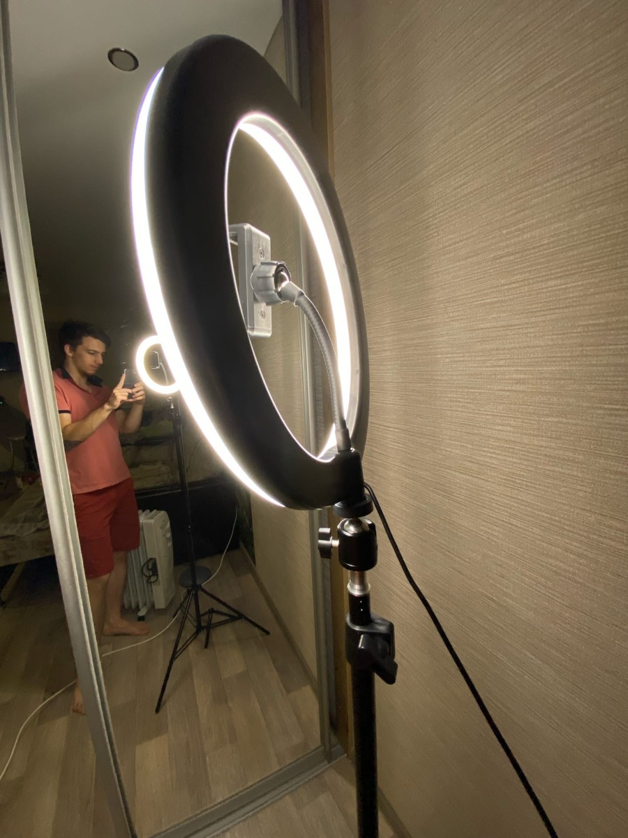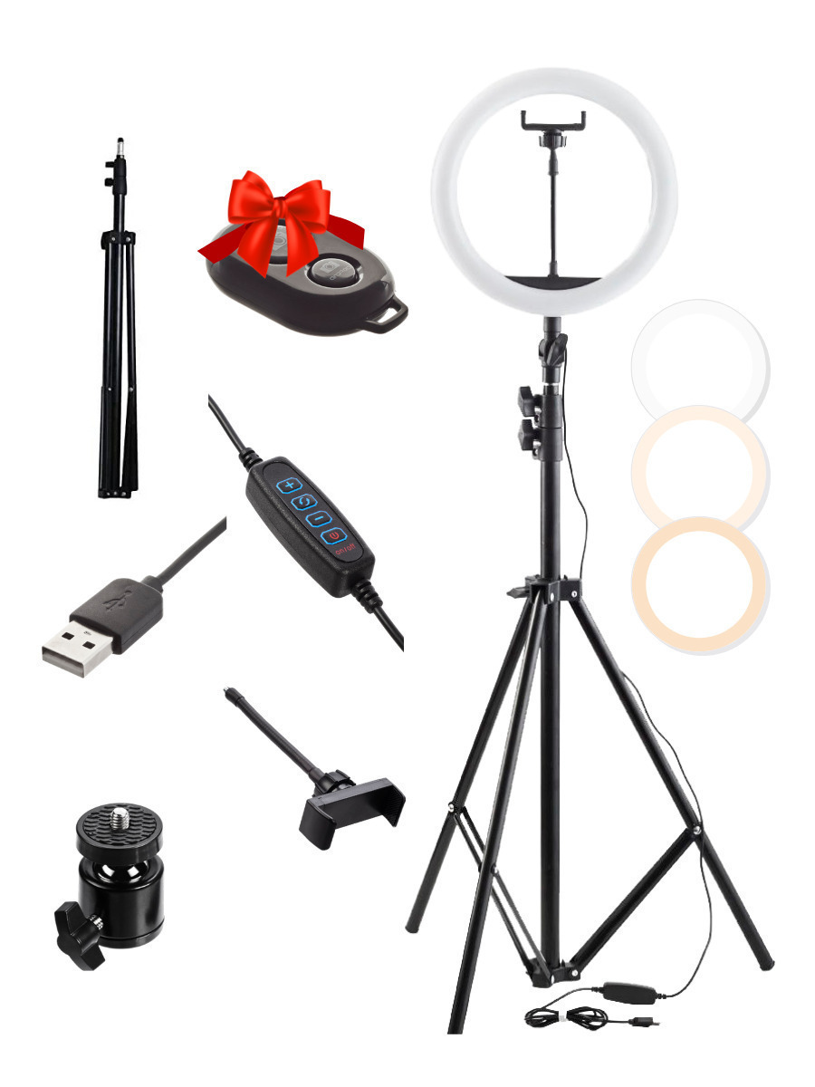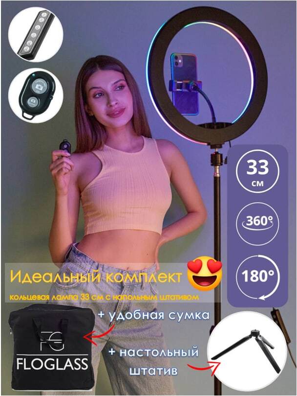 Штатив трипод для кольцевой лампы, смартфона, фотоаппарата 2.1 м + шарнир и держатель для телефона