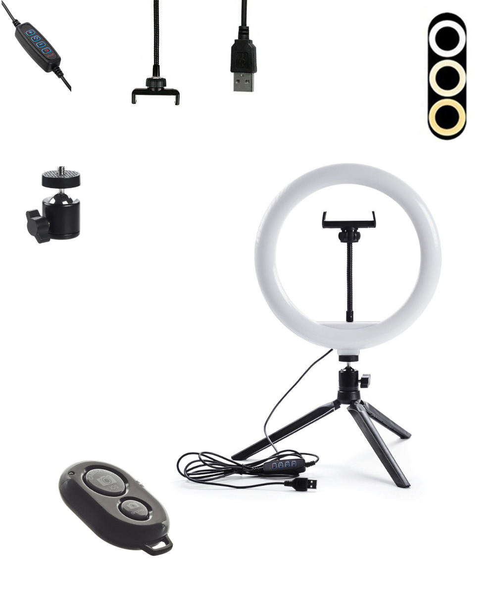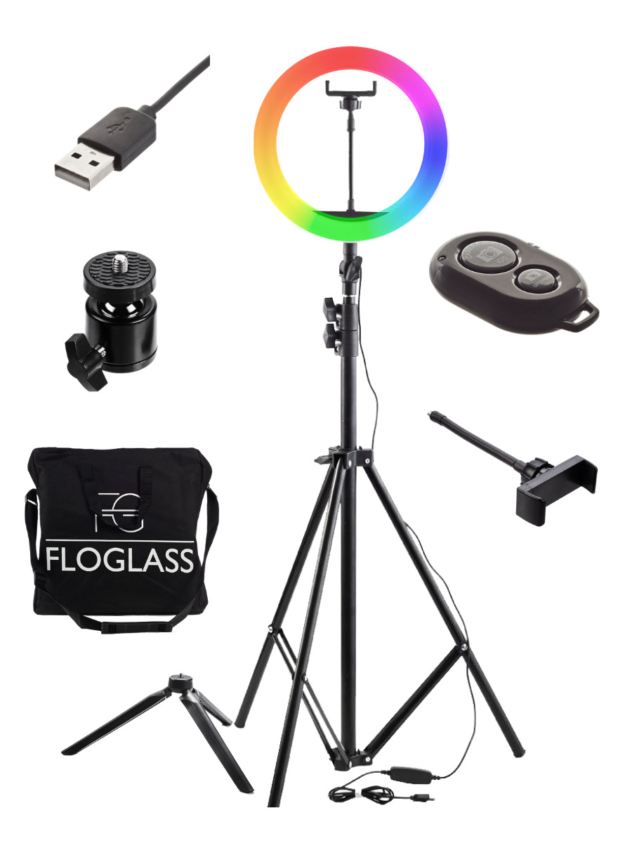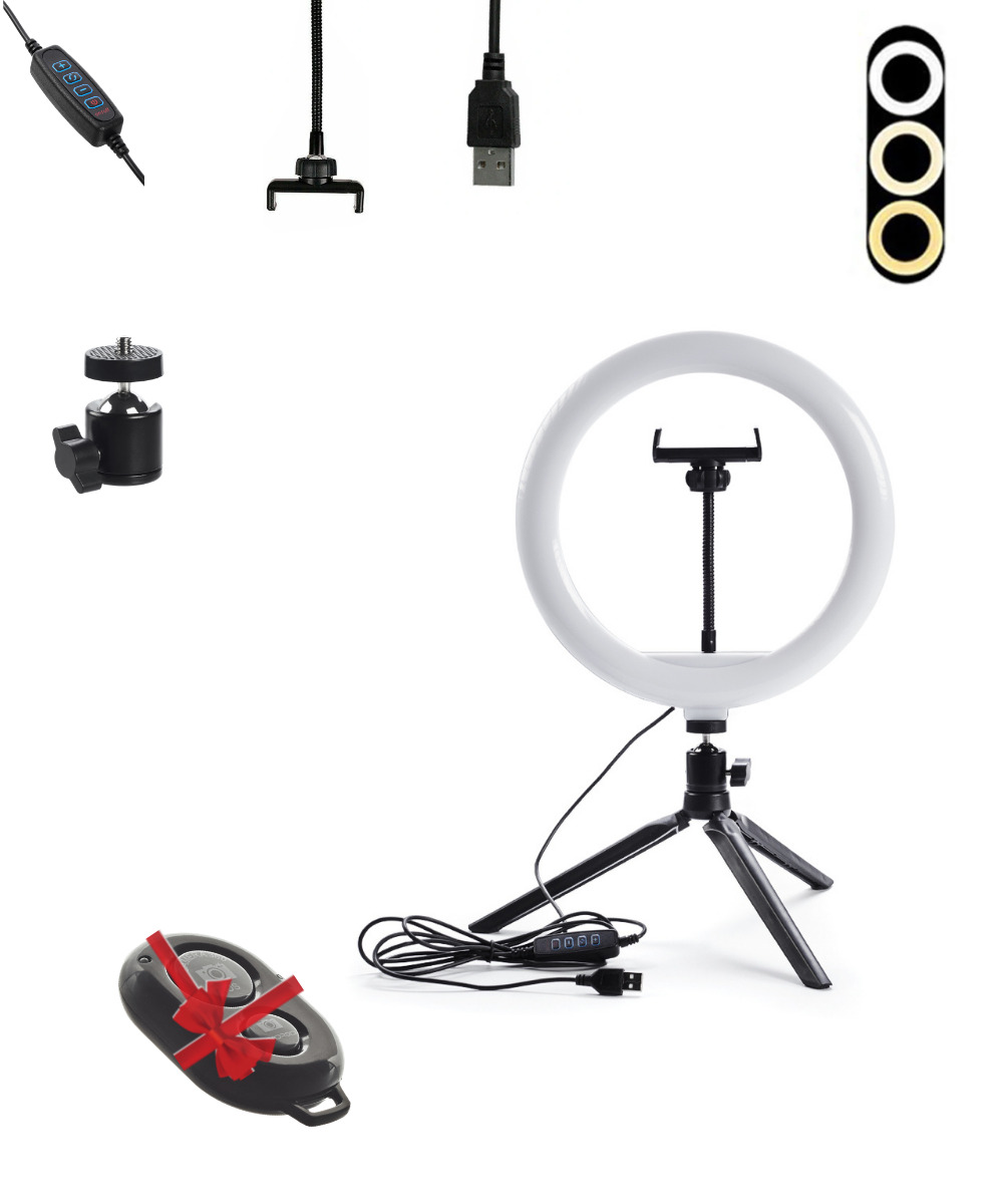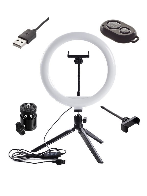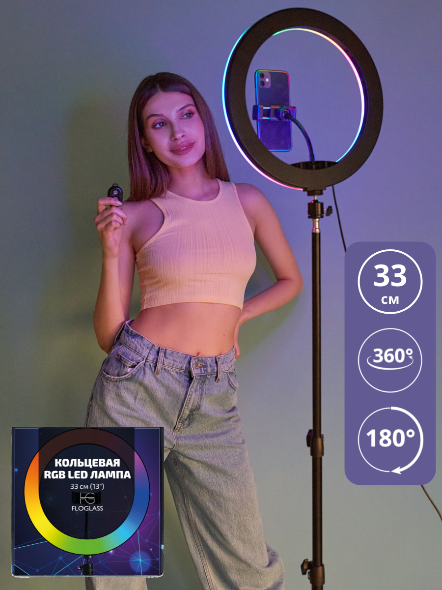 Штатив трипод для кольцевой лампы, смартфона, фотоаппарата 2.1 м + шарнир и держатель для телефона