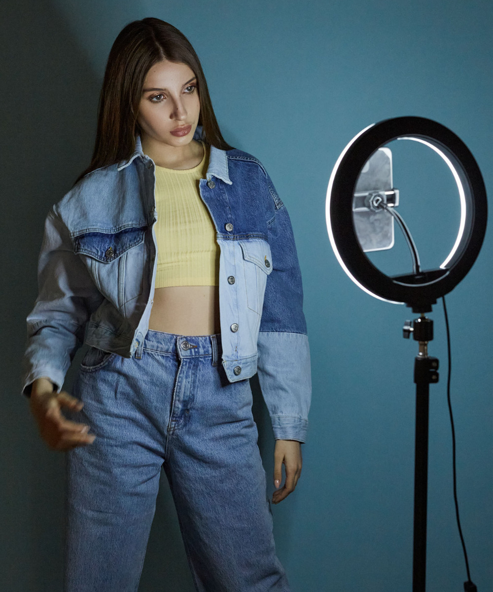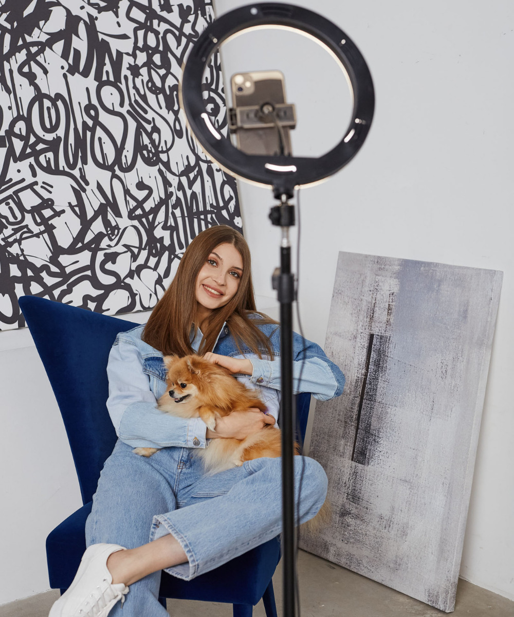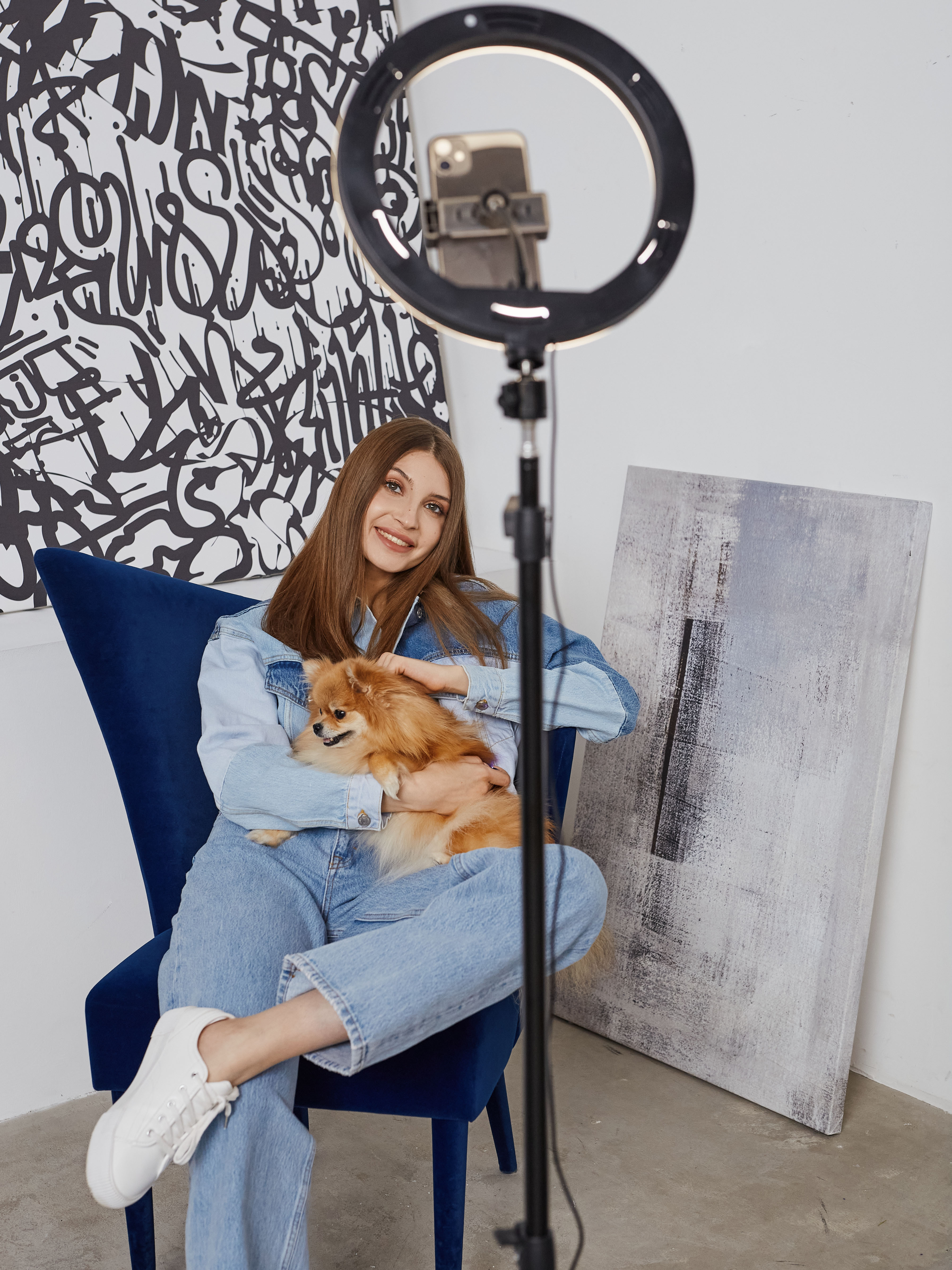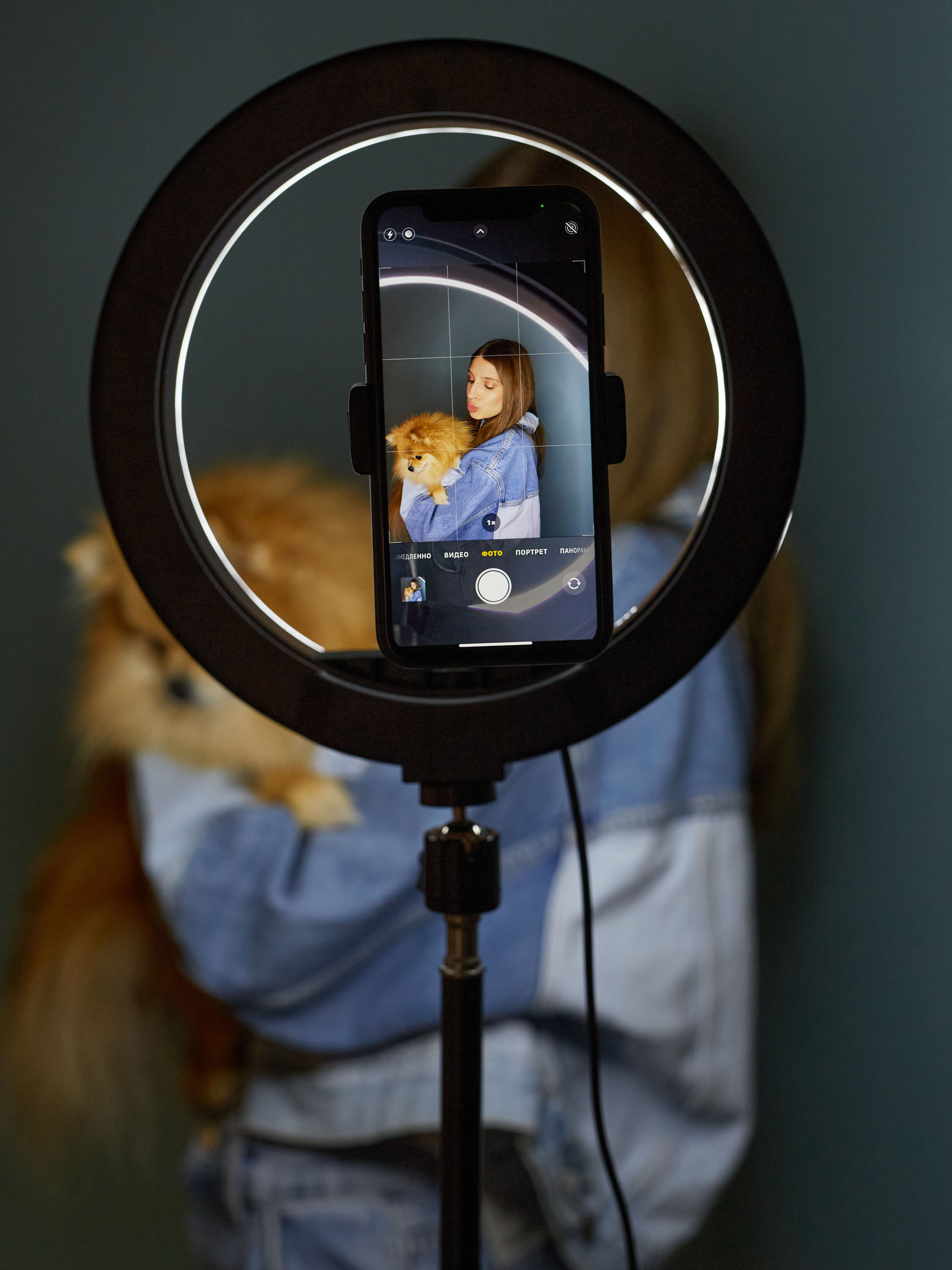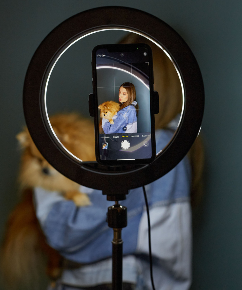 Штатив трипод для кольцевой лампы, смартфона, фотоаппарата 2.1 м + шарнир и держатель для телефона