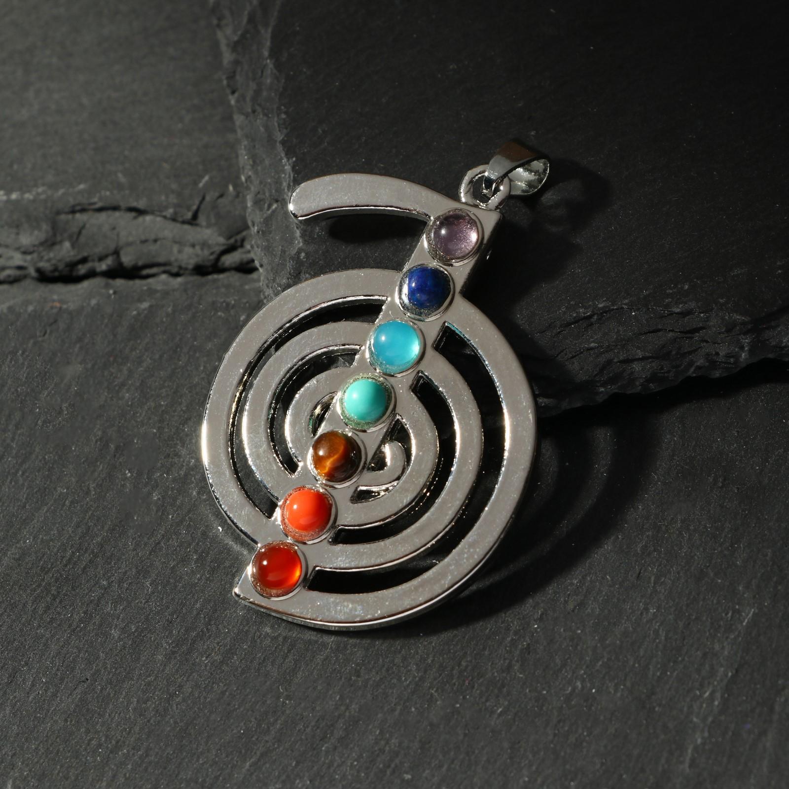 7108184 Подвеска-амулет "Чокурей" символ Рейки, 4,8см, цветной в серебре