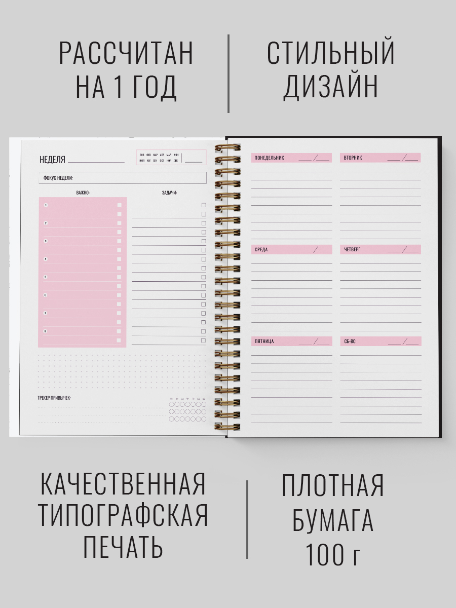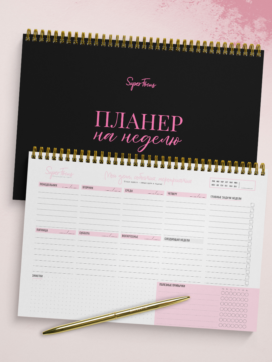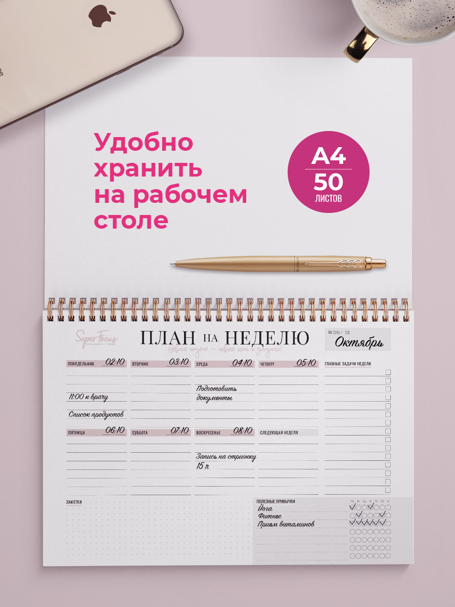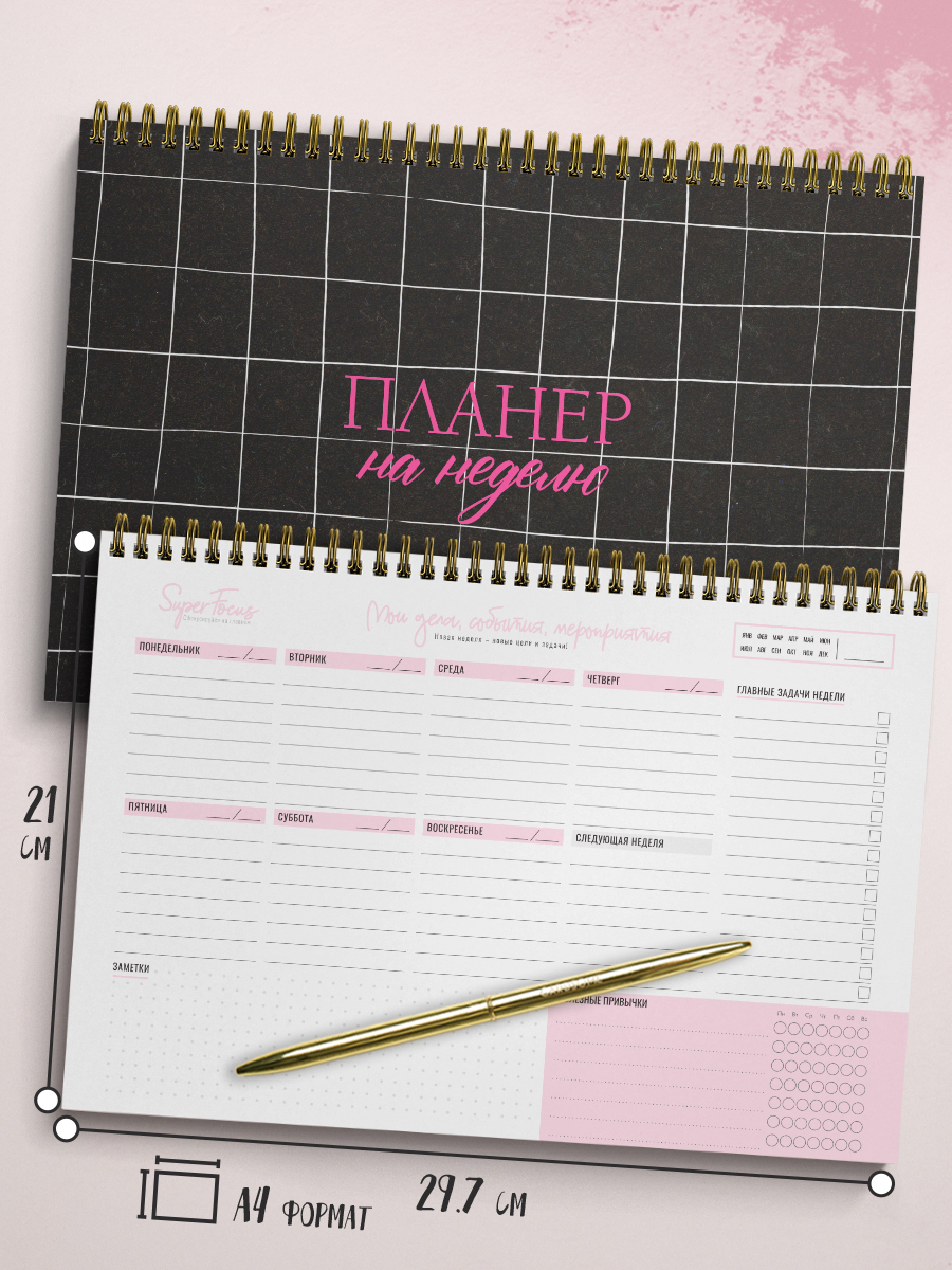 Планер на неделю, Ежедневник, Еженедельник недатированный / Блокнот планер / Блокнот планер для записей / Планнер