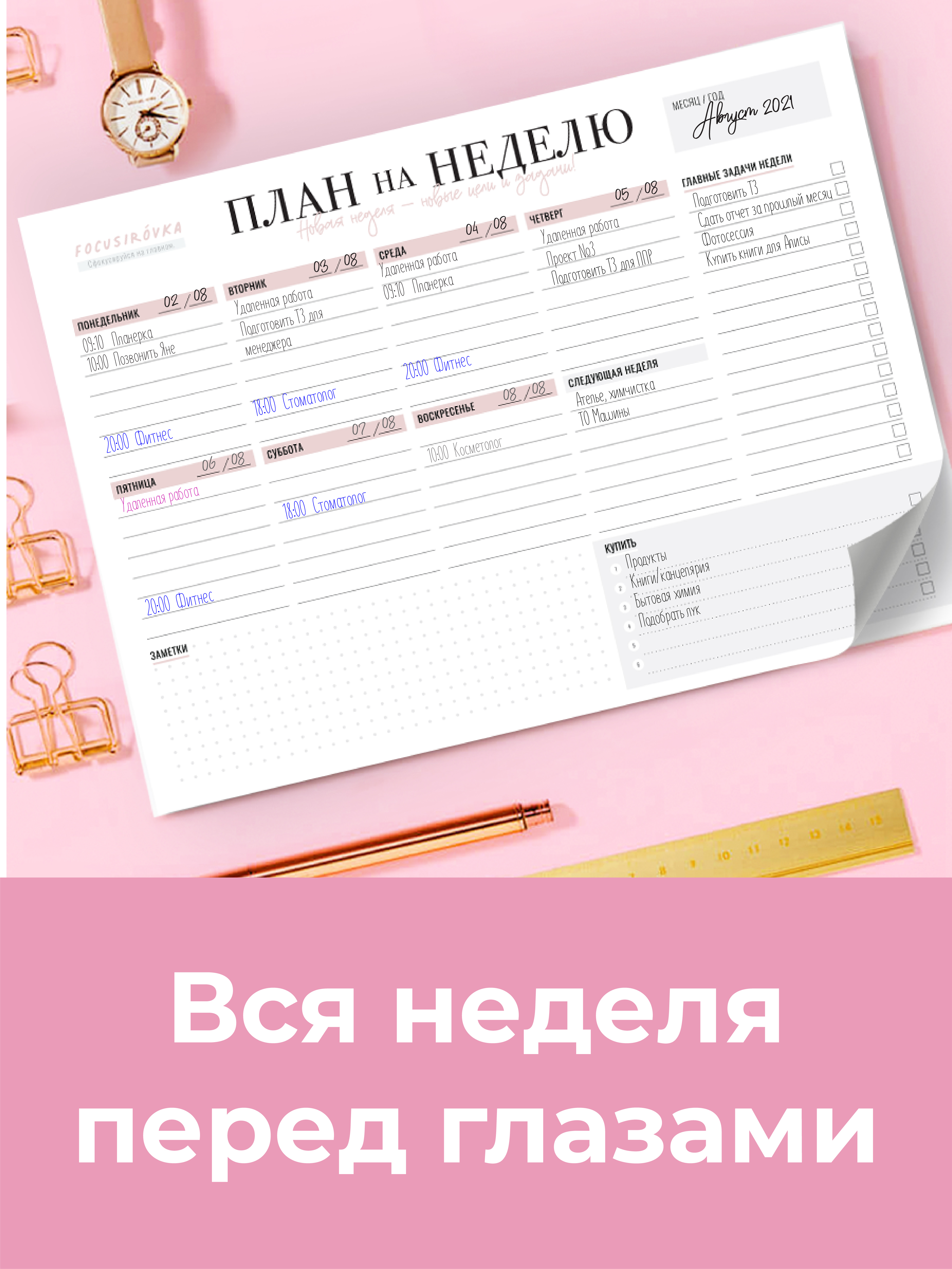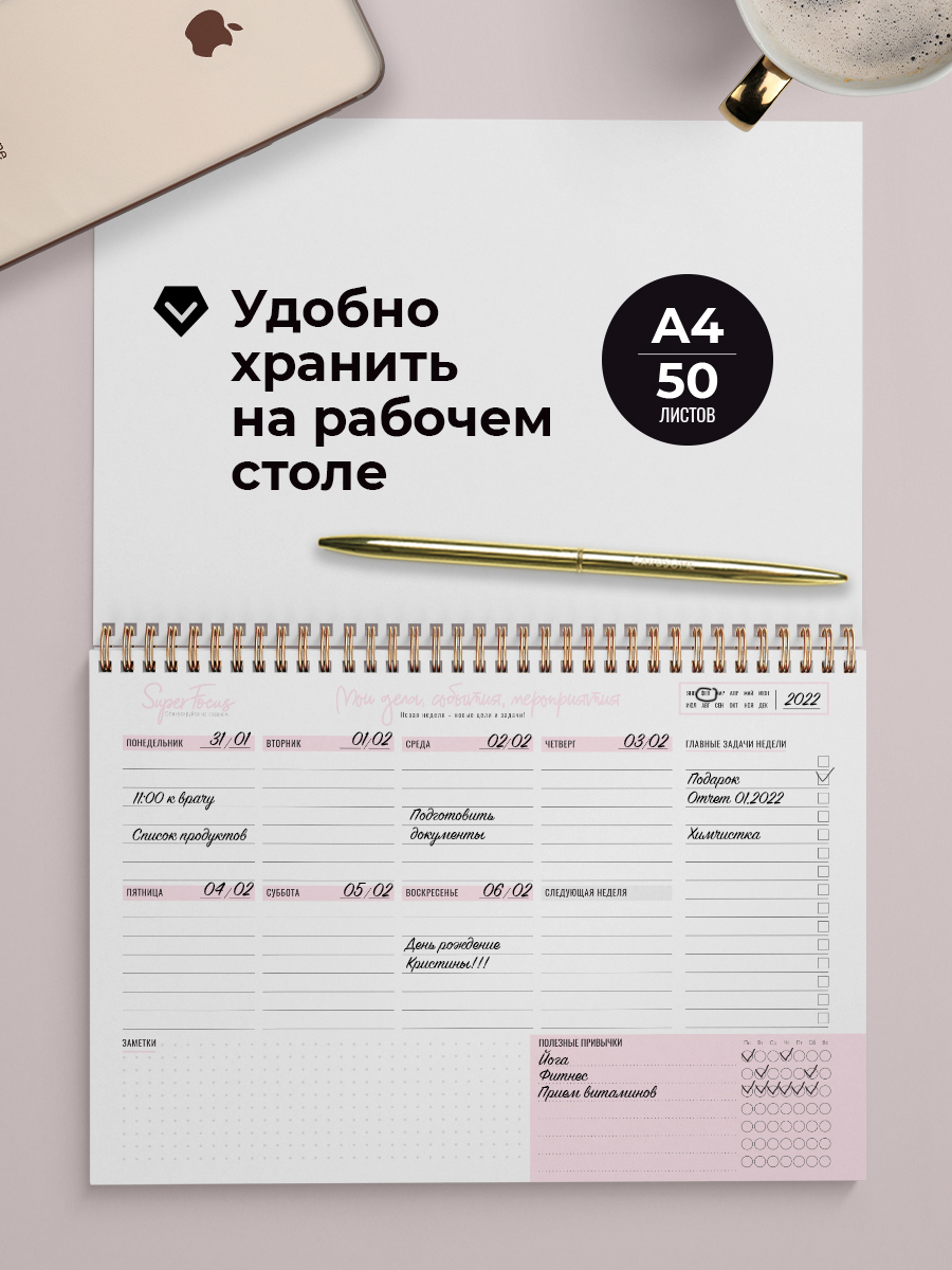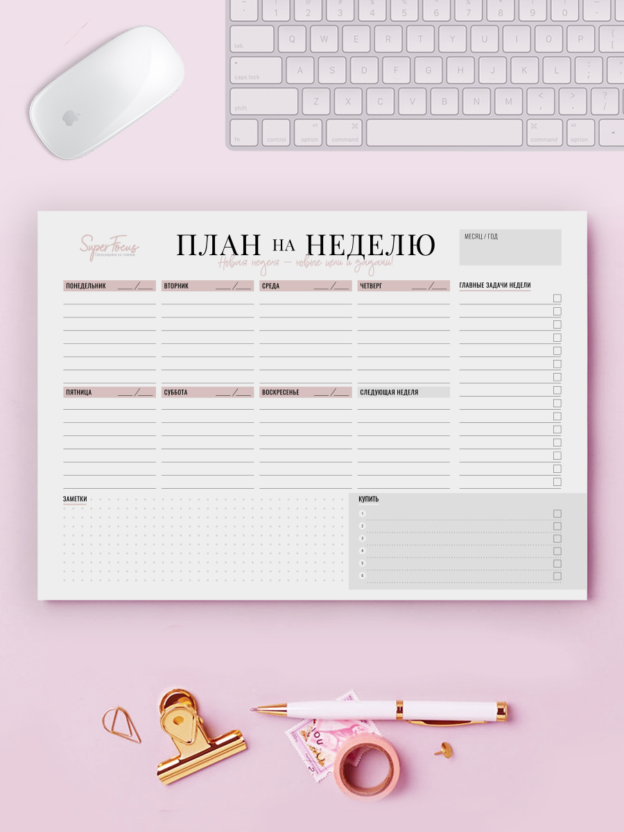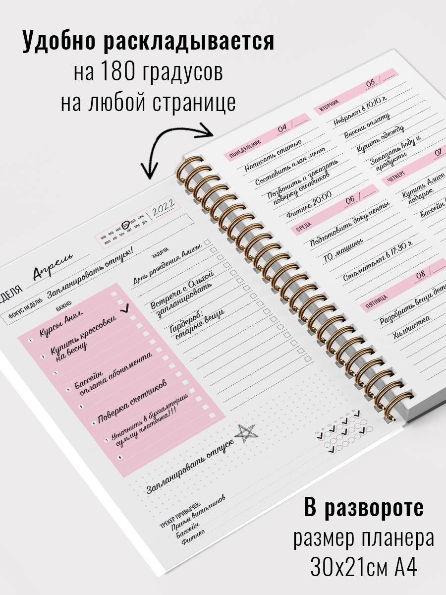 Планер на неделю, Ежедневник, Еженедельник недатированный / Блокнот планер / Блокнот планер для записей / Планнер
