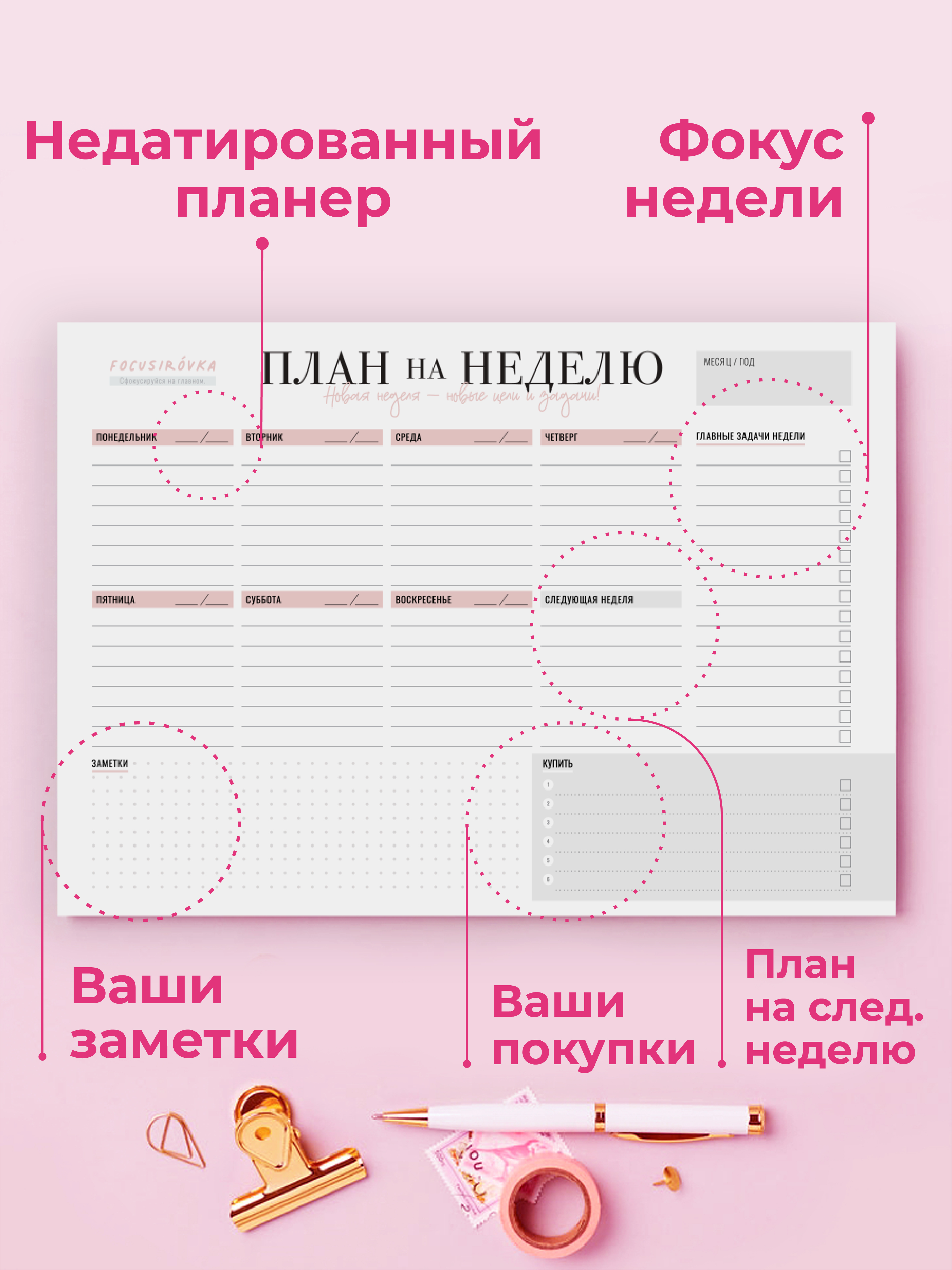 Планер на неделю, Ежедневник, Еженедельник недатированный / Блокнот планер / Блокнот планер для записей / Планнер Планнинг