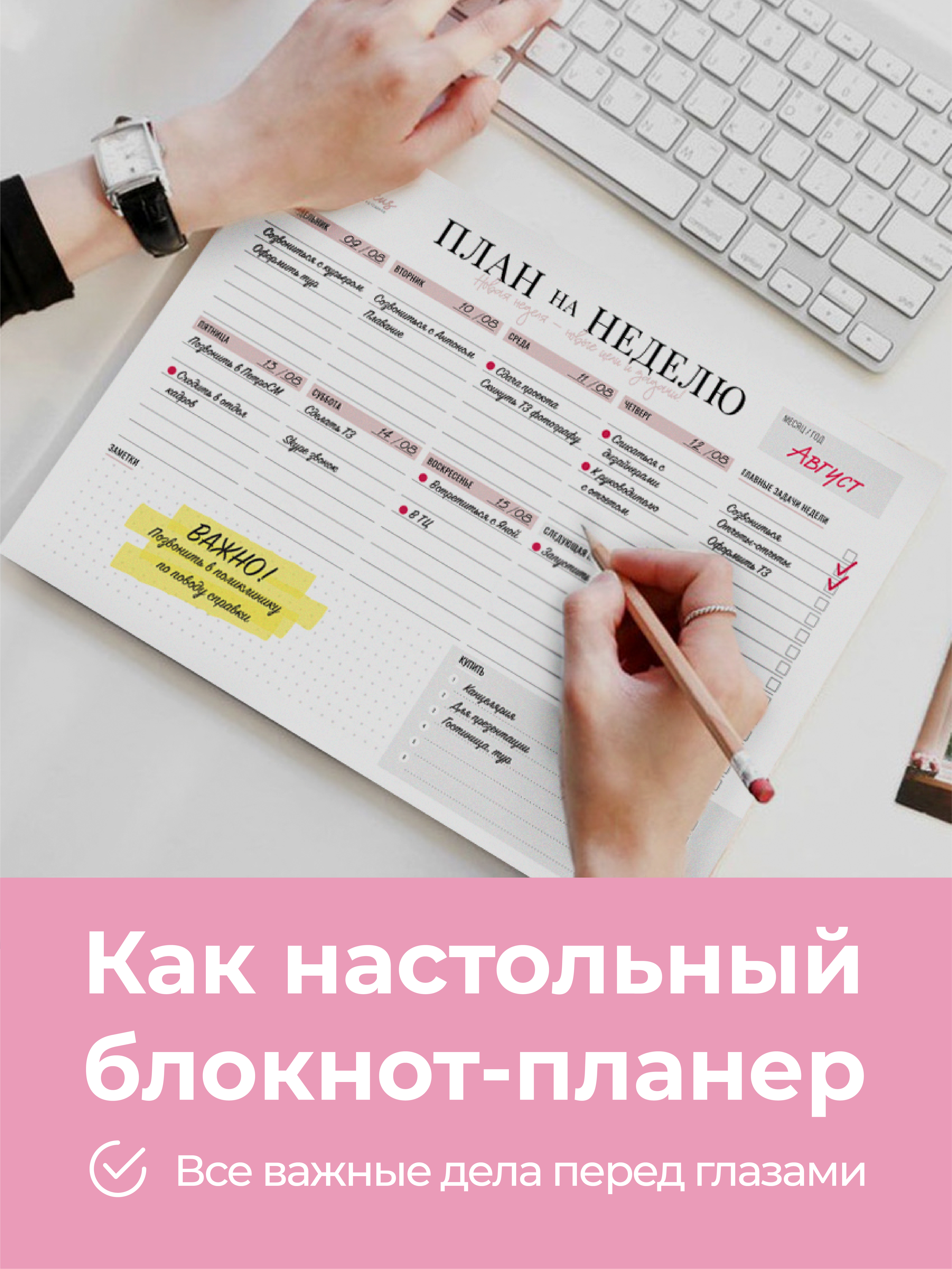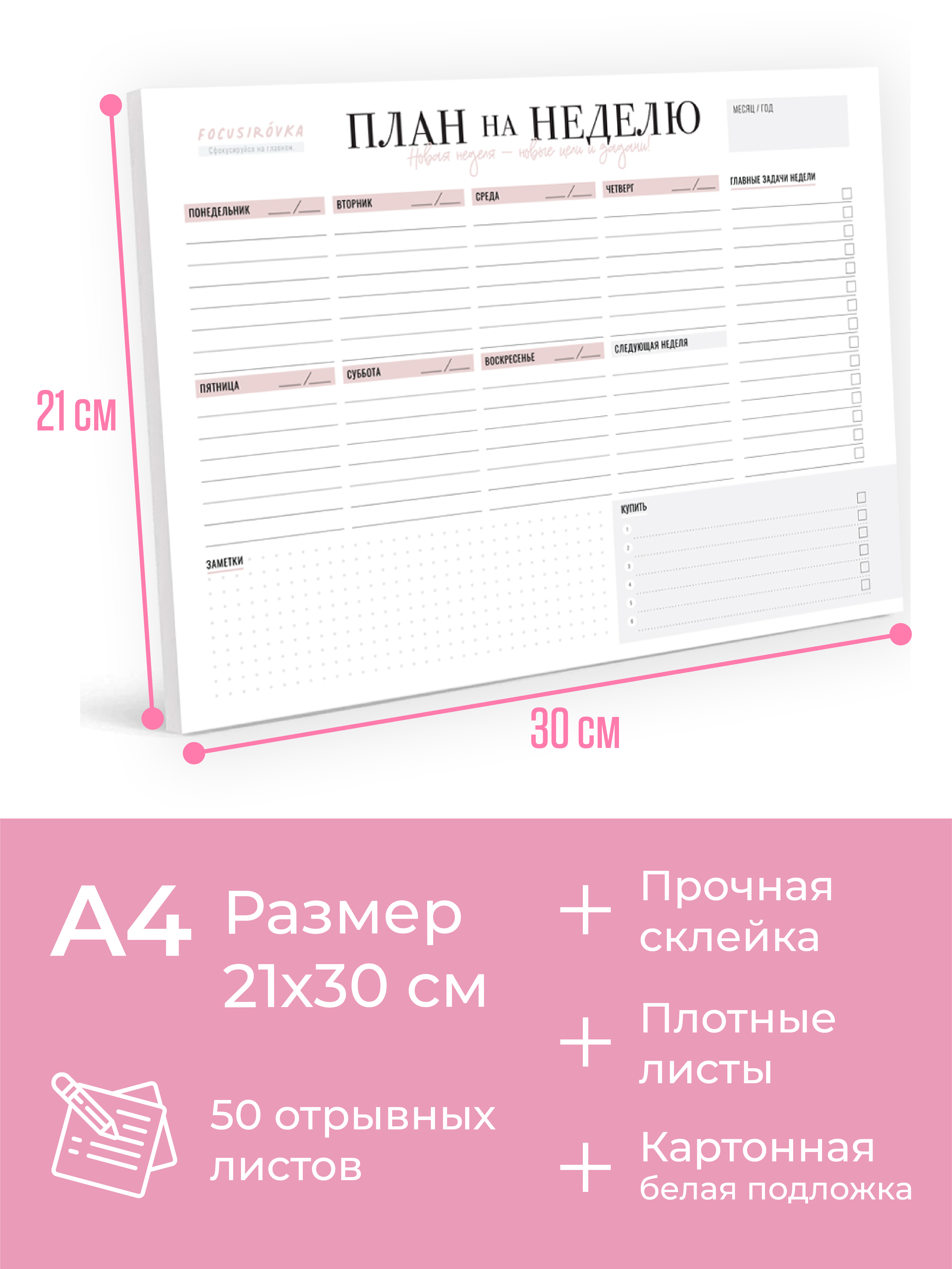 Настольный блокнот-планер для заметок на неделю с отрывными листами, формат А4, 21х30 см, 50 листов