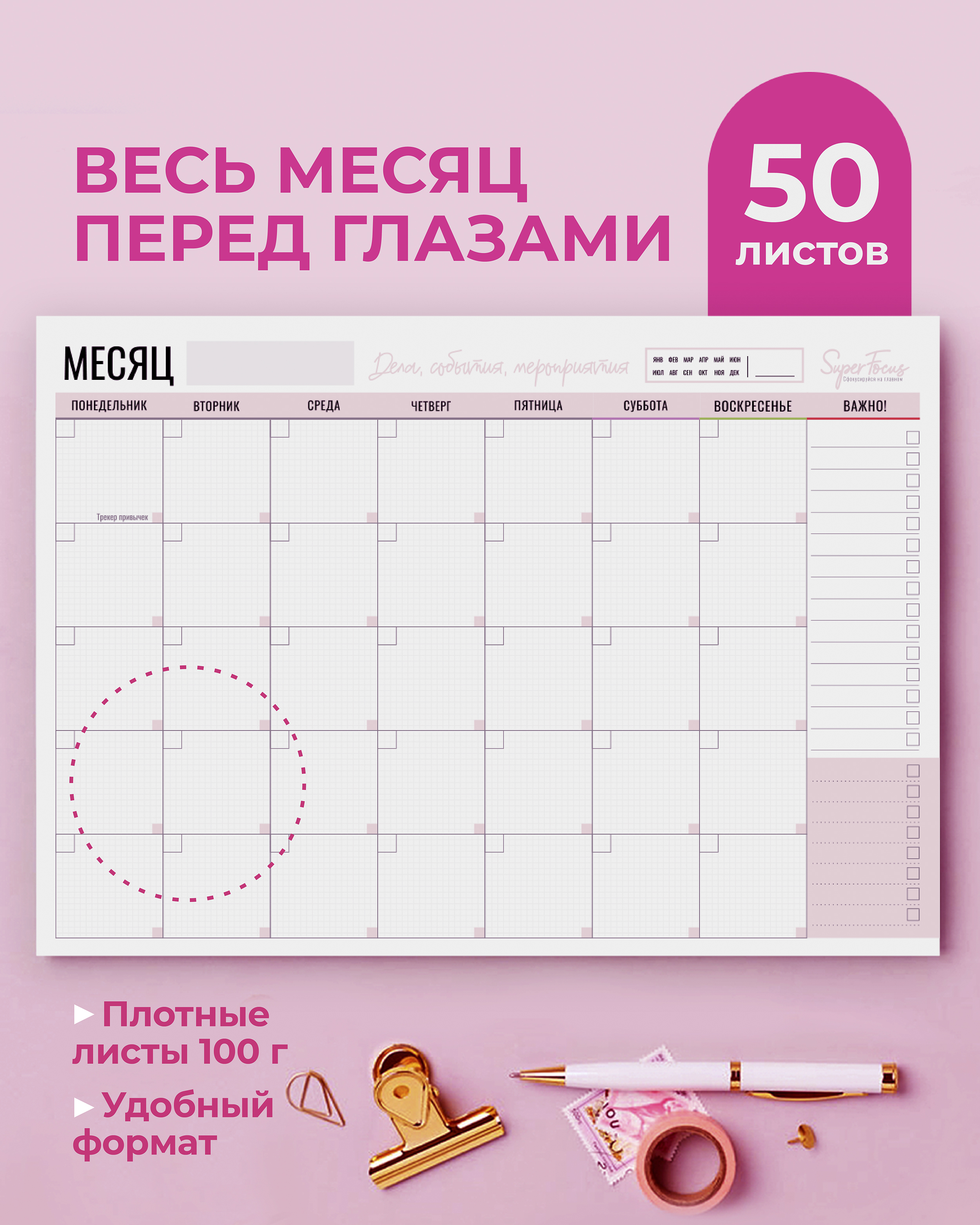 Планер на месяц/ планер ежедневник/ трекер привычек/ блокнот-планер / настольный планер