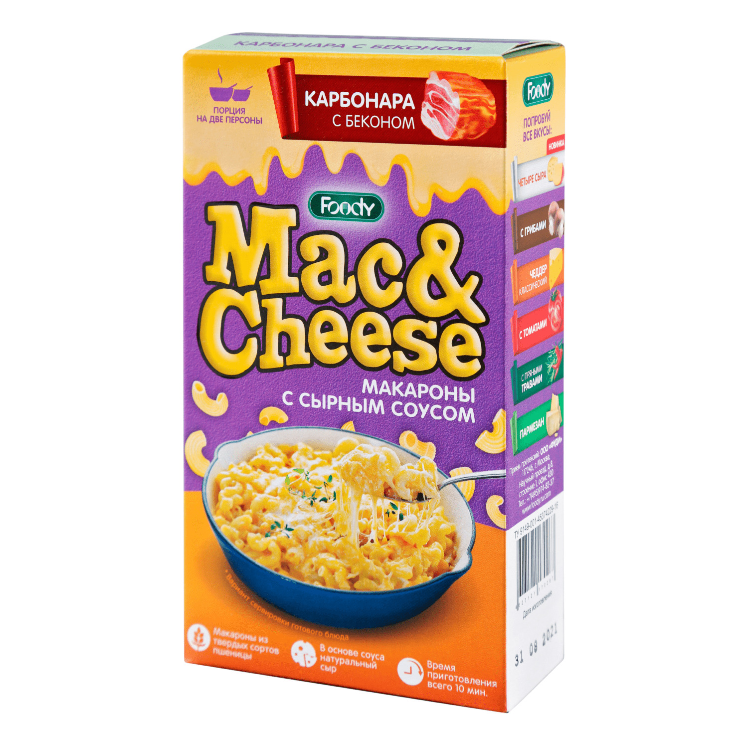 Макароны с сырным соусом Foody Mac&Cheese Карбонара с беконом, 143г