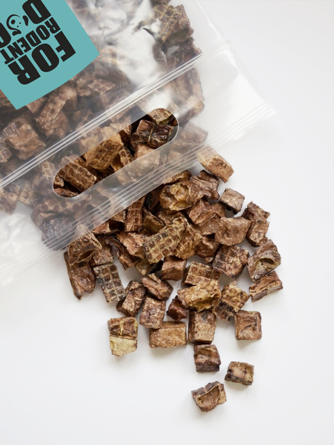 Лакомство для собак FOR RODENT DOG легкое говяжье, кусочки 1 см х 1 см, 300 г