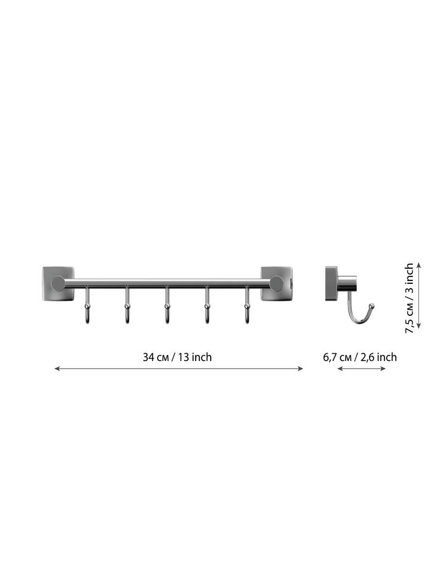 Крючки для ванной на рейлинге / Рейлинг для кухни и ванной / Рейлинг с крючками