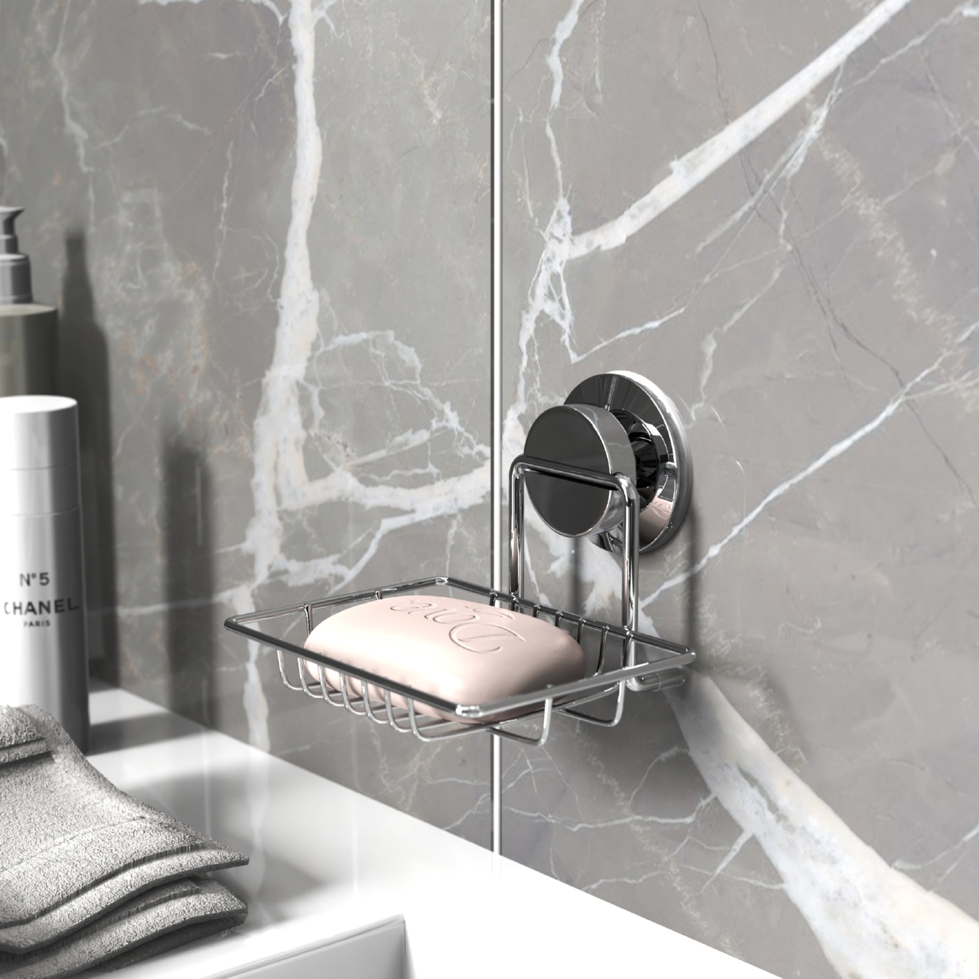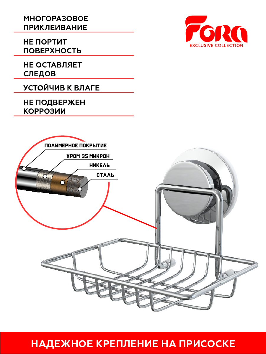 Полка сетчатая угловая 1-ярусная Atlant нажимная присоска хром Fora