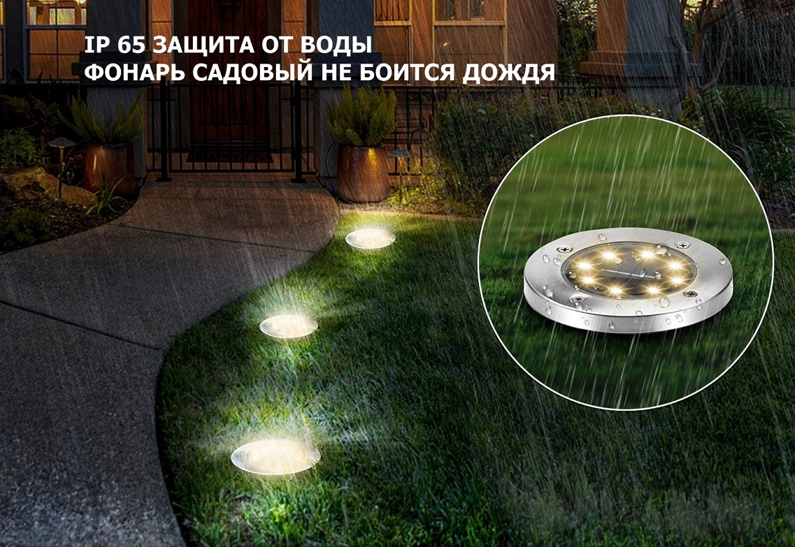 Фонарь садовый на солнечных батареях ForAll 8 Led/Комплект садовый фонарь 2 шт