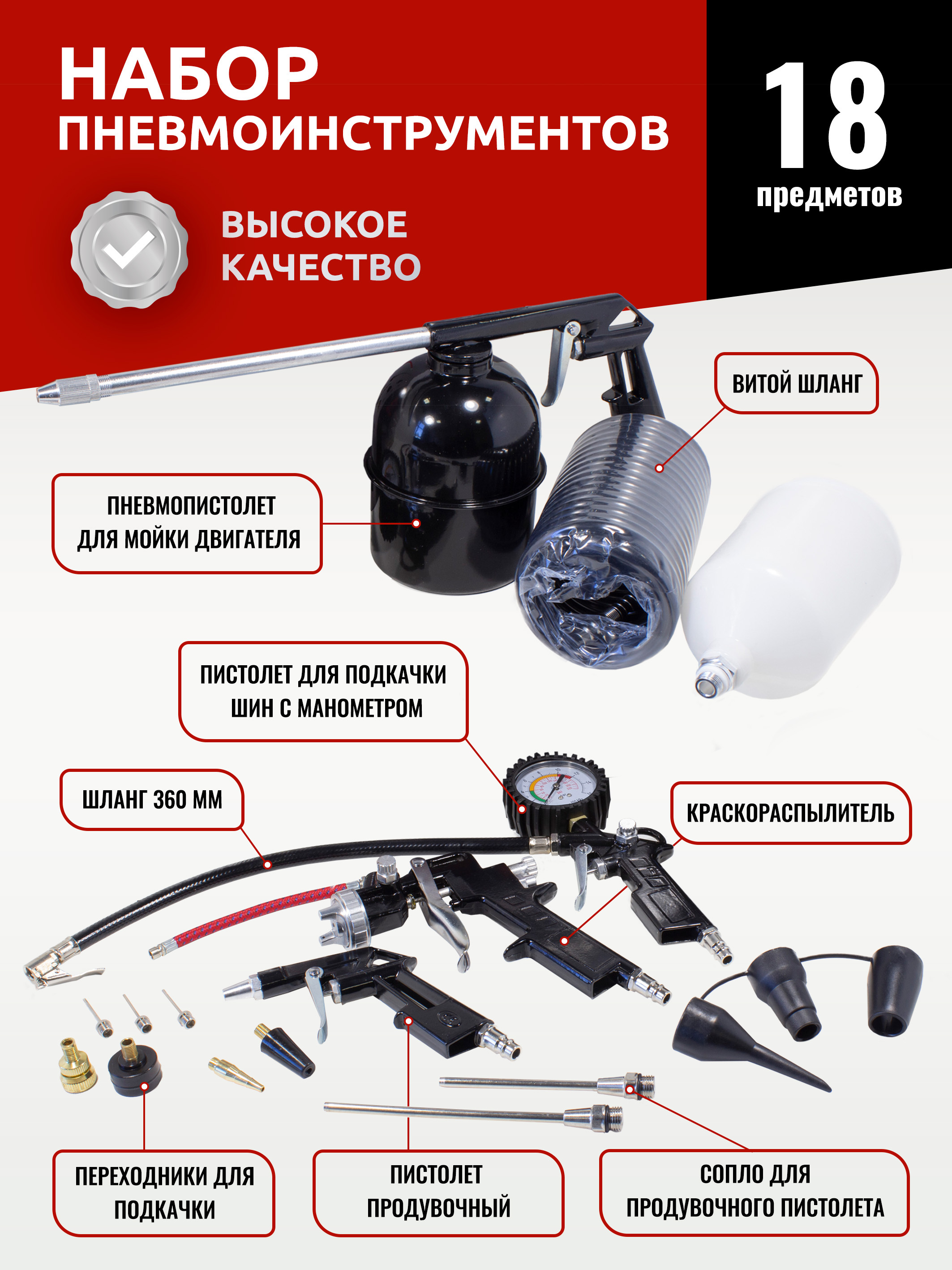 Краскораспылитель c верхним бачком в комплекте с аксессуарами, 18 предметов