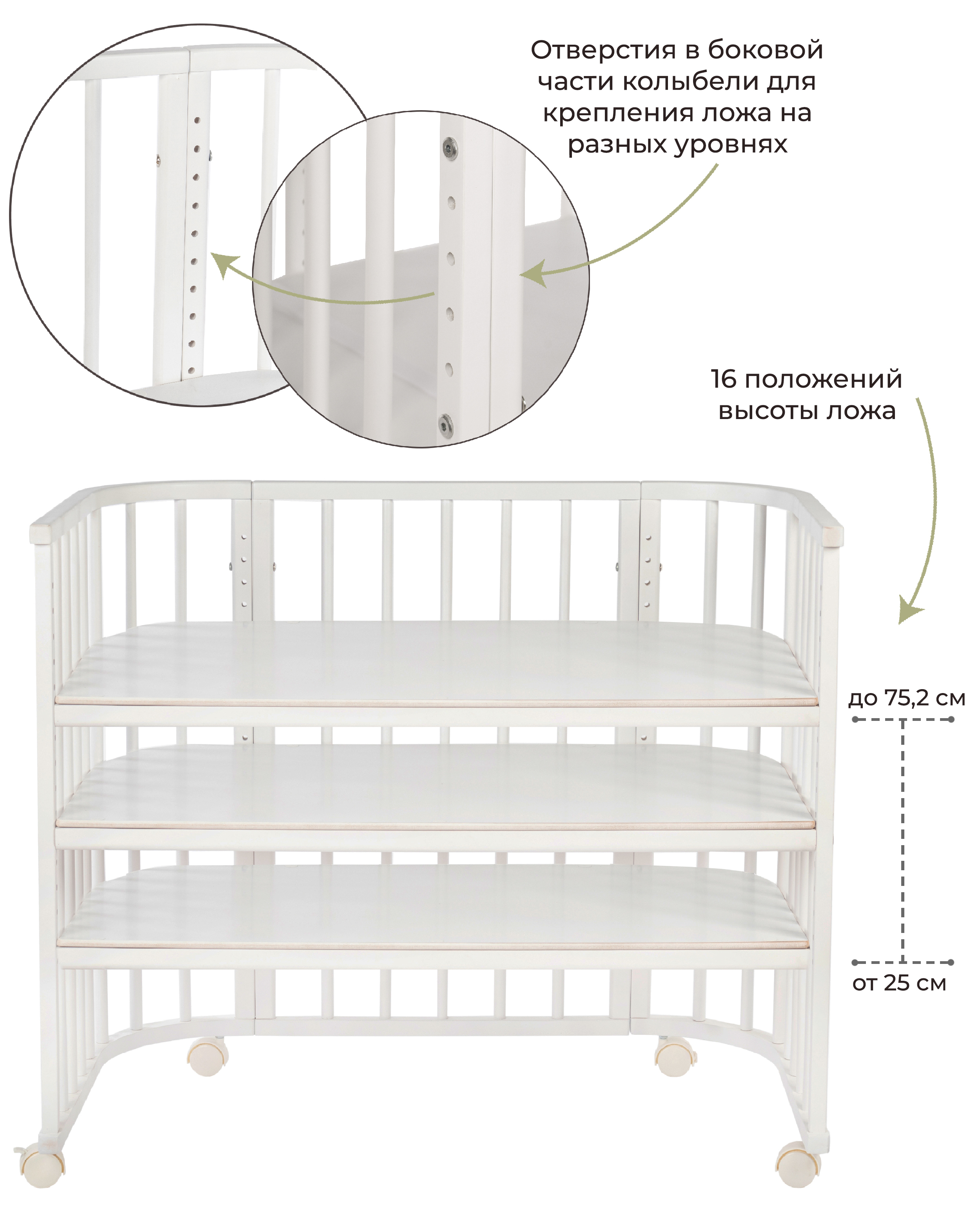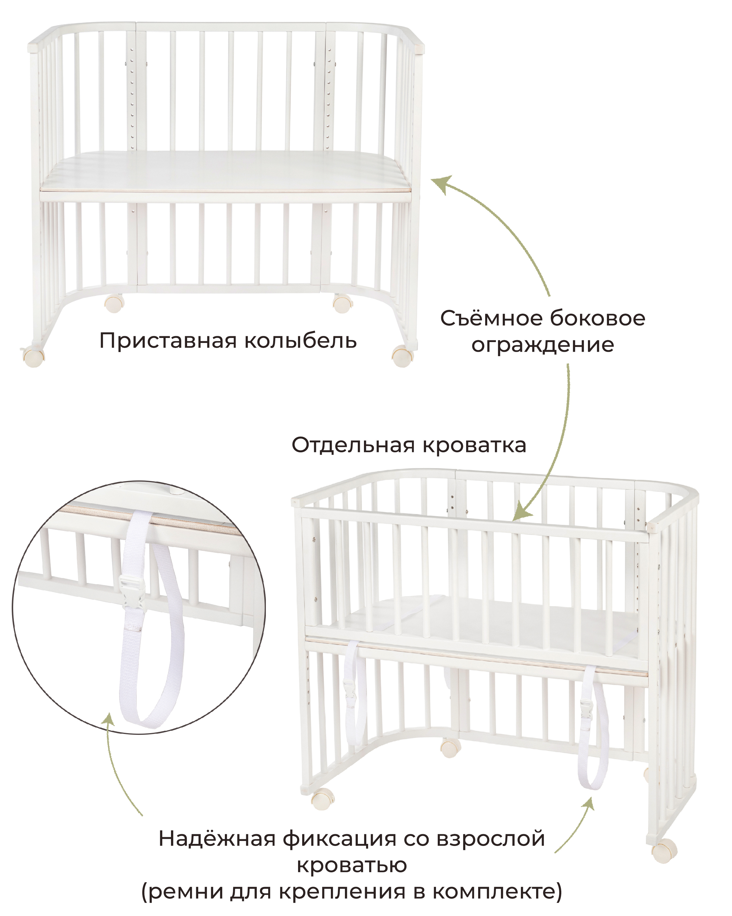 Колыбель Forest kids приставная Biella с матрасом Белый