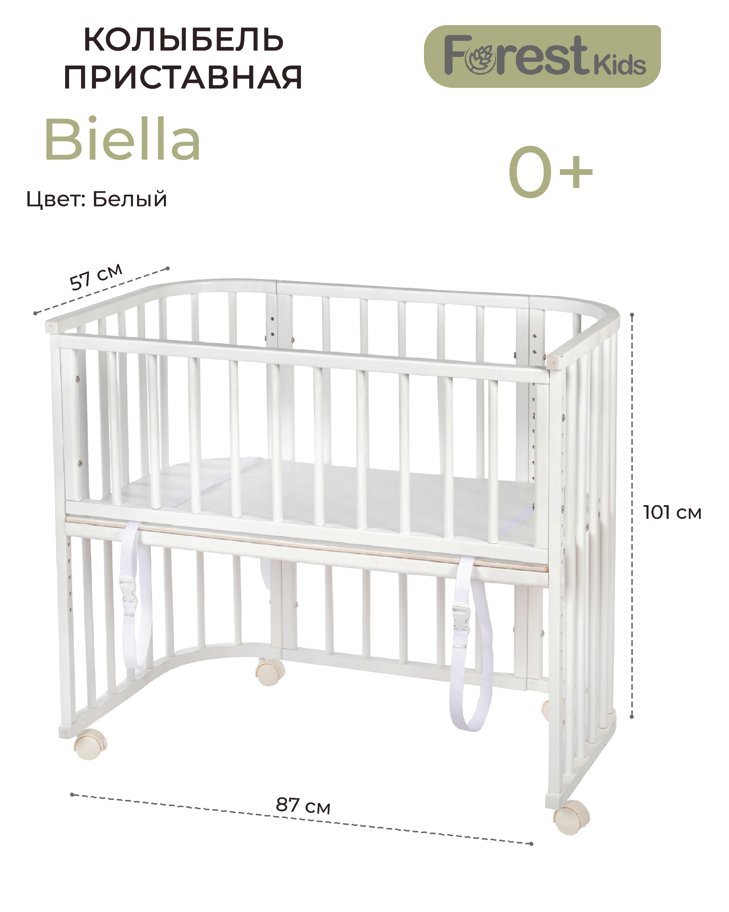 Колыбель Forest kids приставная Biella с матрасом Слоновая кость