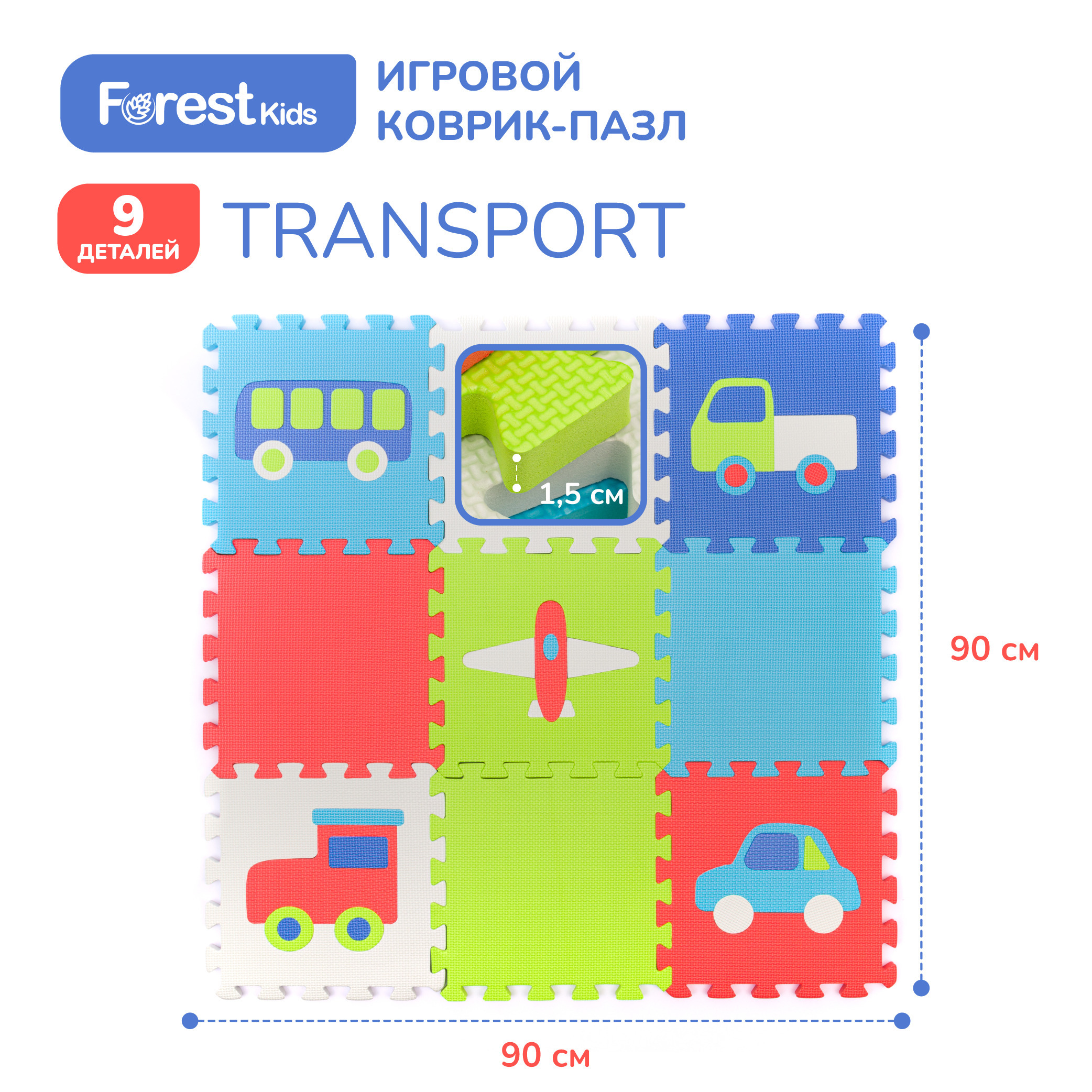 Игровой коврик пазл Transport 9 деталей 30х30х1,5 см Sky blue