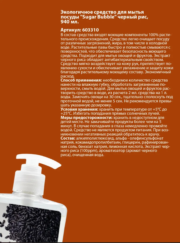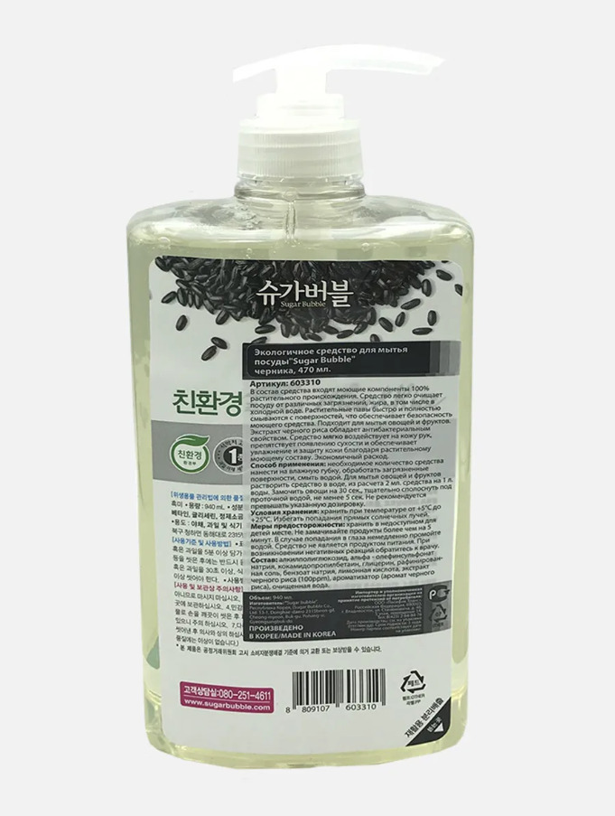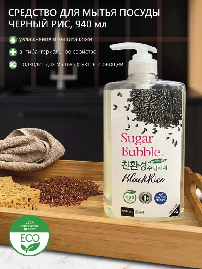 Sugar Bubble Экологичное средство для мытья посуды черный рис, 940 мл. / Посуда / Мытье / Чистота