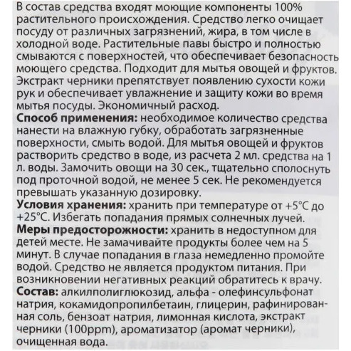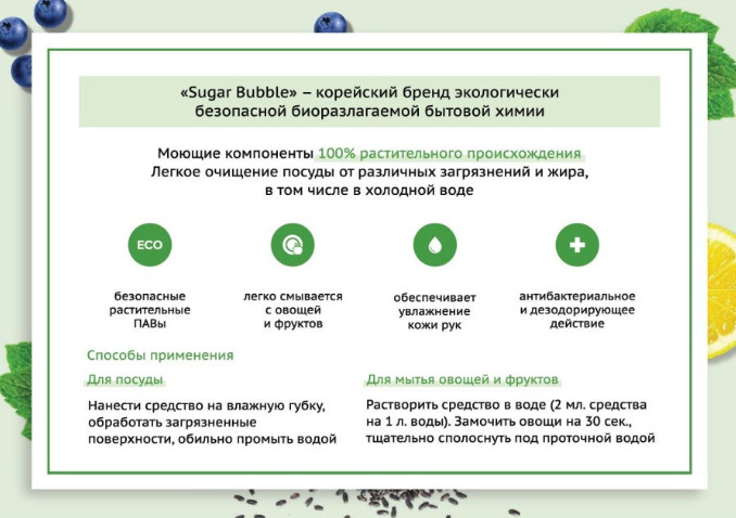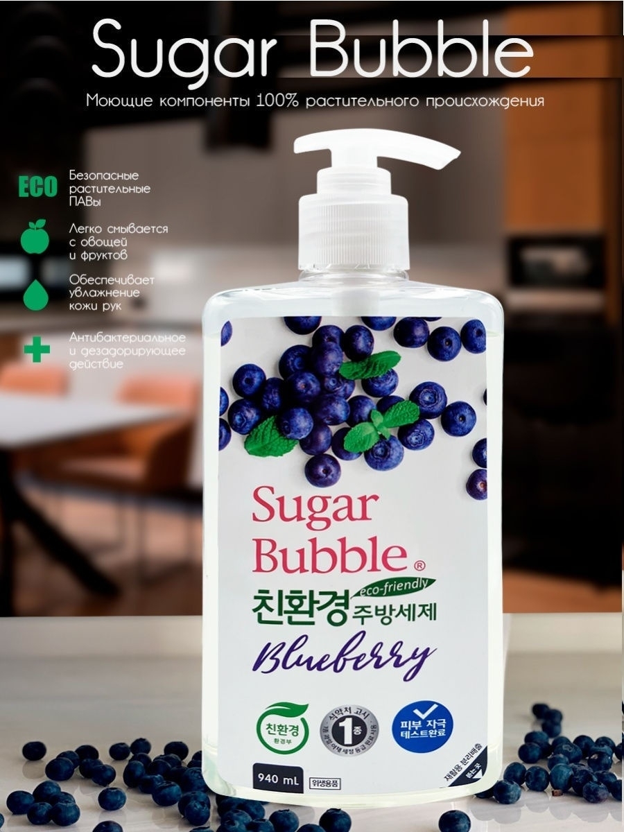 Sugar Bubble Экологичное средство для мытья посуды черника, 940 мл. / Посуда / Мытье / Чистота