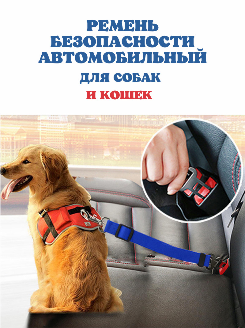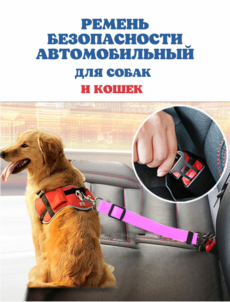 Ремень безопасности в машину для собак, кошек / поводок для животных в салон автомобиля / шлейка