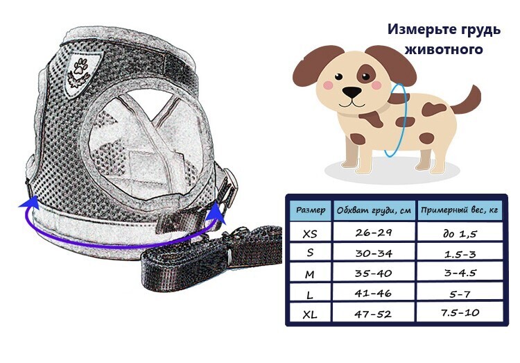 Шлейка дышащая со светоотражающими элементами для собак мелких пород и кошек