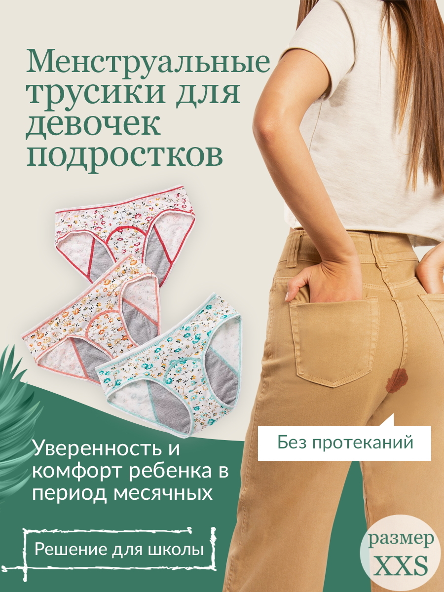 Набор трусов 3шт. детских для девочек для менструации для месячных, размер XXS