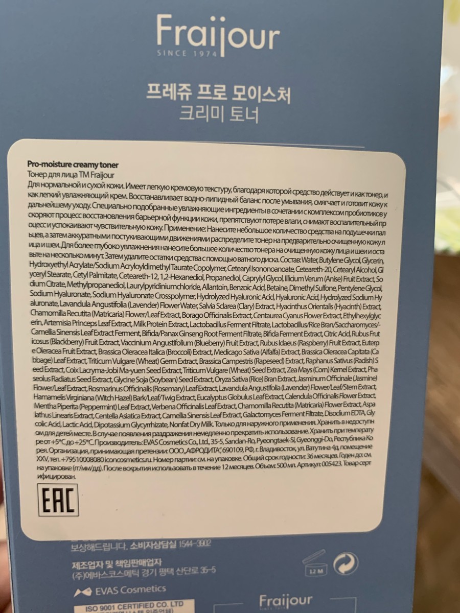 Fraijour Восстанавливающий тоник для лица с гиалуроновой кислотой Pro-moisture creamy, 500 мл