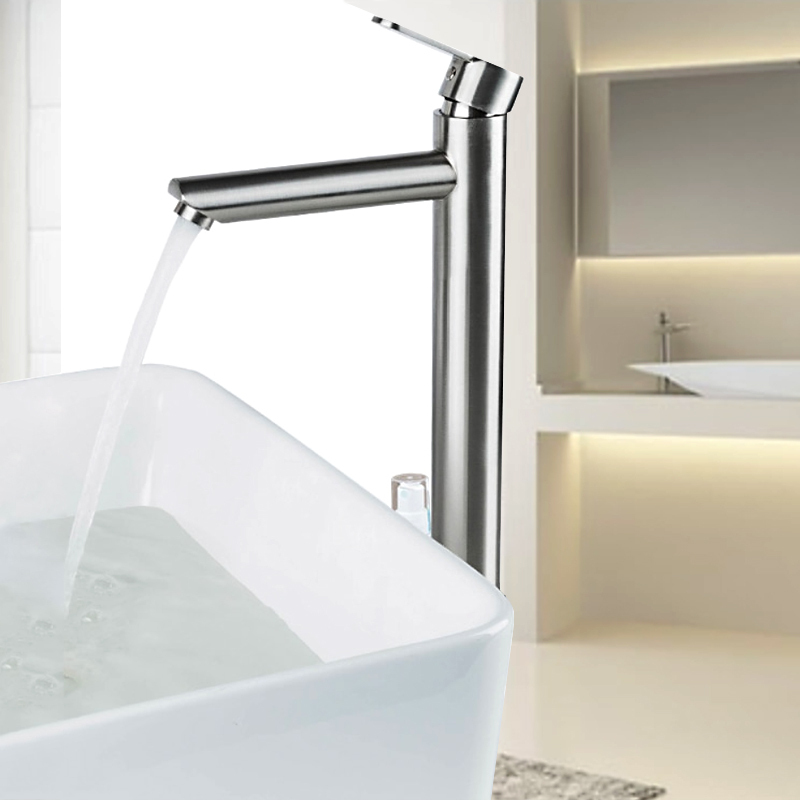 Высокий однорычажный смеситель для накладной чаши-раковины Frap F10801-2 сатин, нержавеющая сталь