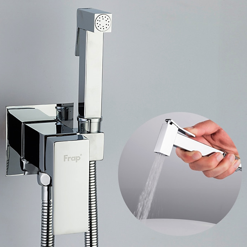 Встраиваемый однорычажный смеситель с гигиеническим душем Frap F7505 хром, латунь