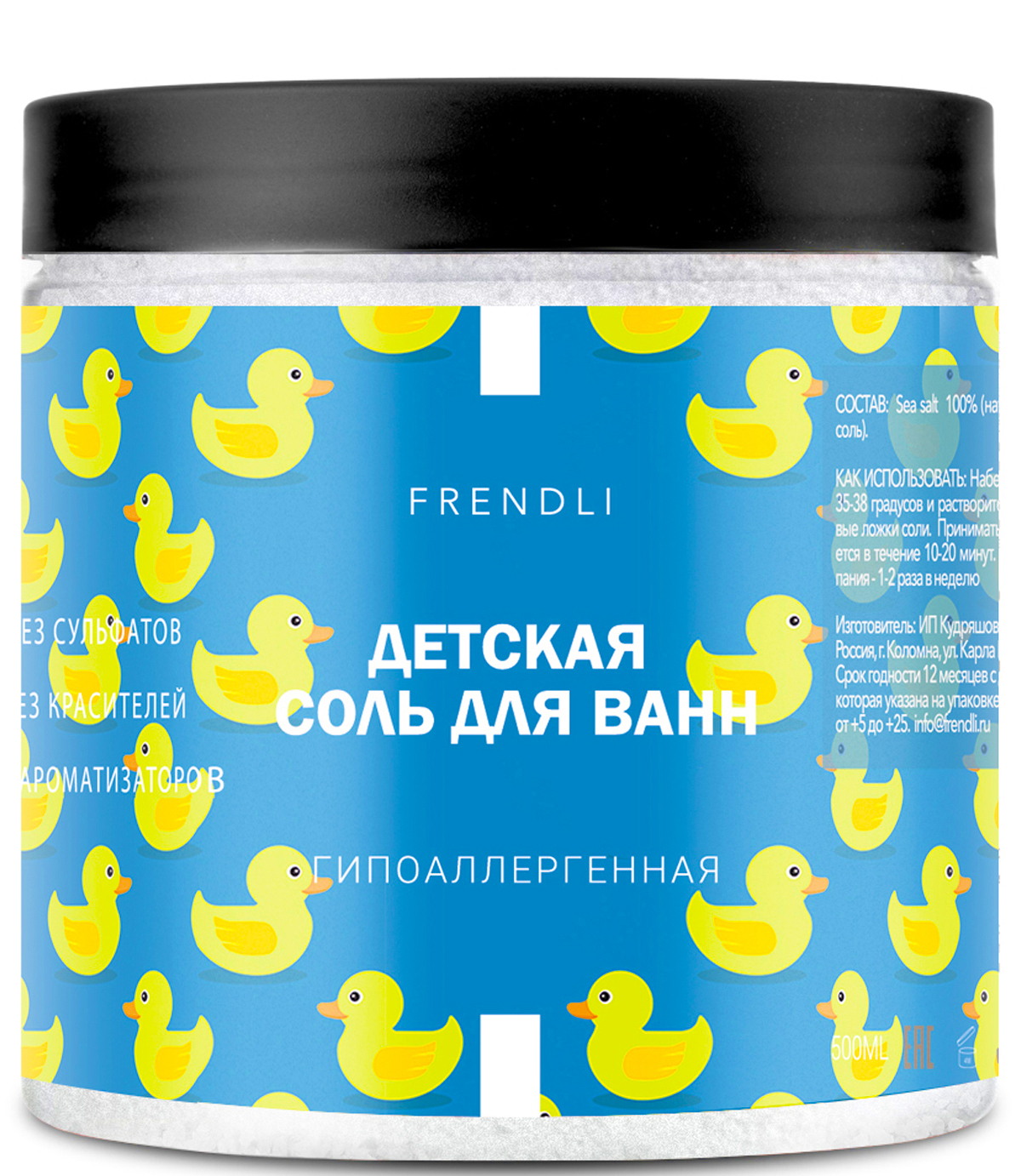 Frendli Натуральная детская морская соль для ванн без отдушек и красителей для чувствительной кожи