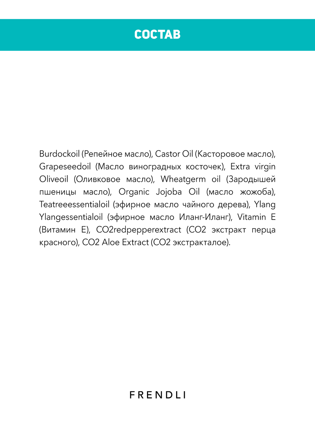 Frendli Масло для роста и против выпадения волос с маслом чайного дерева и красным перцем